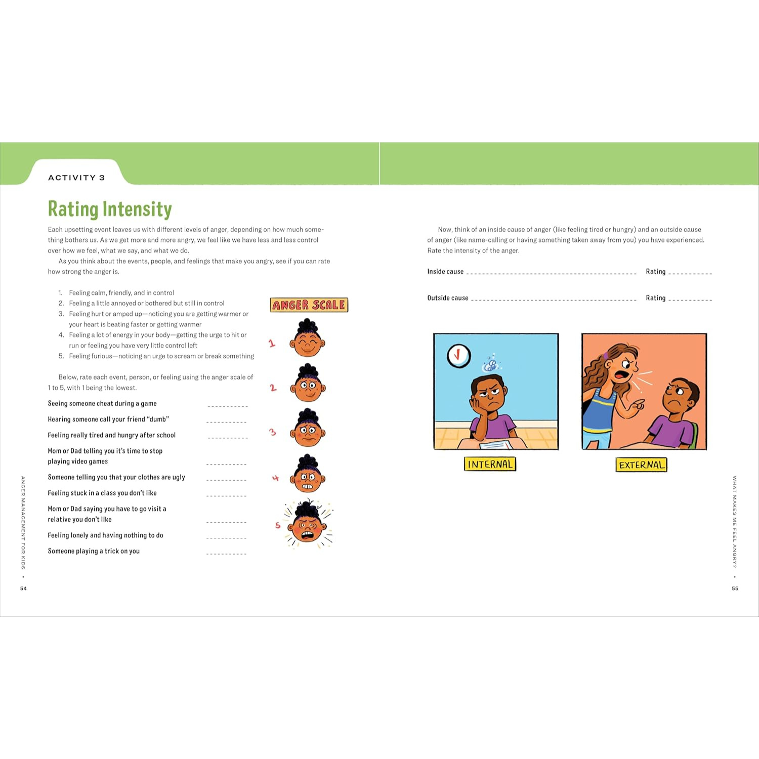 - Feel-good habits―In this workbook about anger management for kids, you can explore lots of healthy habits that help you react better in situations that make you mad.