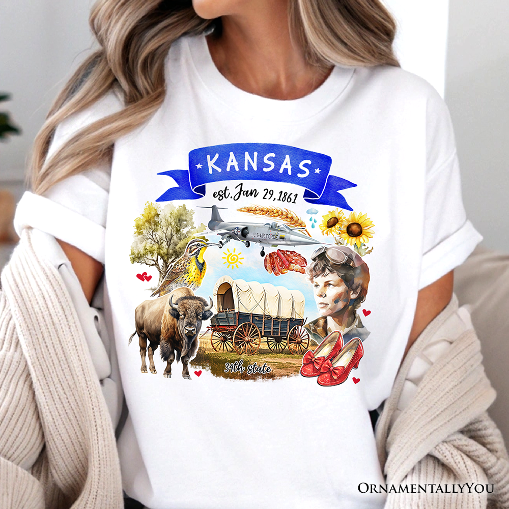 Artistic Kansas State Themes and Landmarks T-Shirt, Tee for History and Travel Lovers