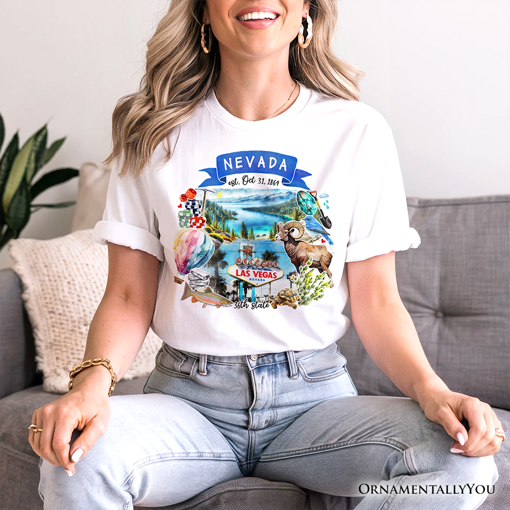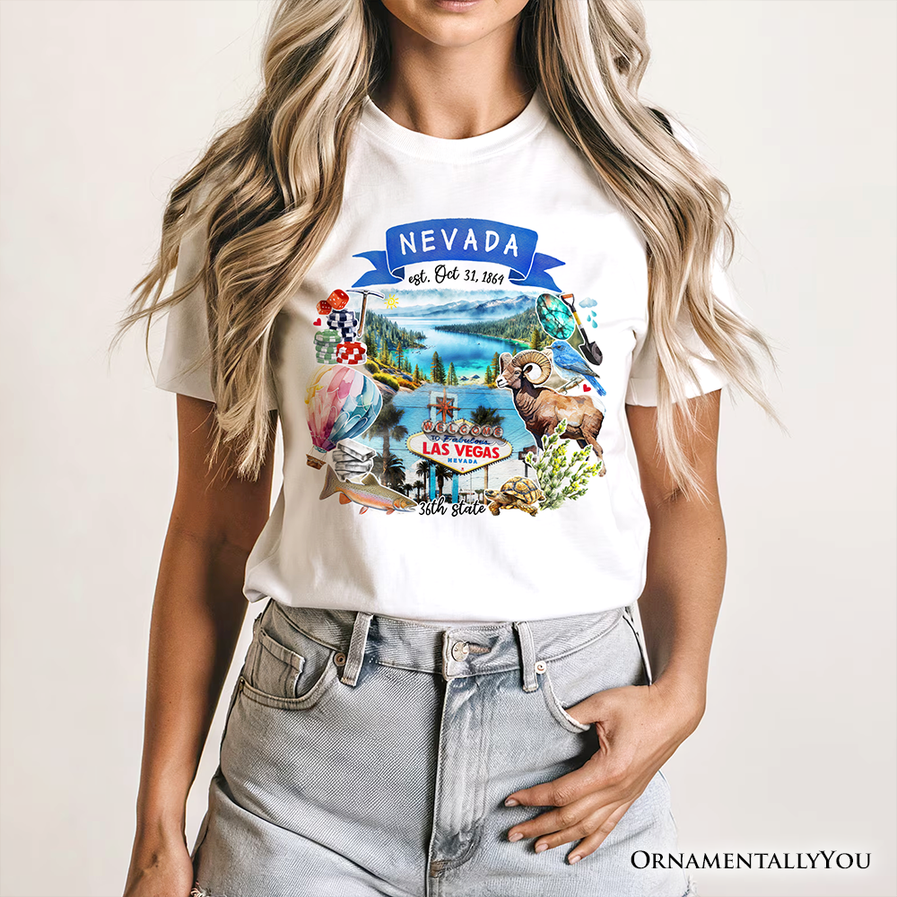 Artistic Nevada State Themes and Landmarks T-Shirt, Tee for History and Travel Lovers