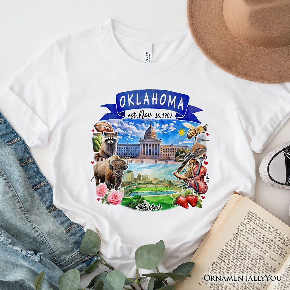 Artistic Oklahoma State Themes and Landmarks T-Shirt, Tee for History and Travel Lovers