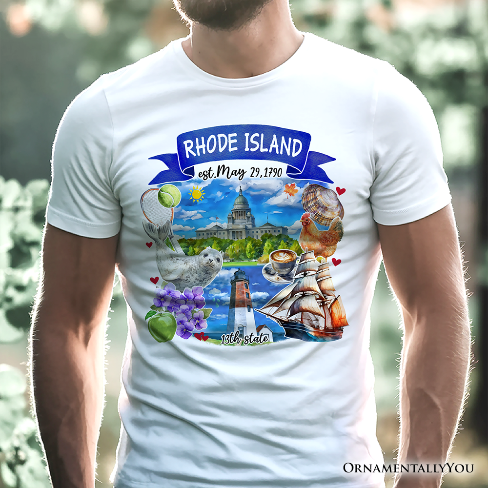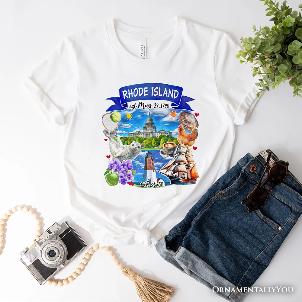 Artistic Rhode Island State Themes and Landmarks T-Shirt, Tee for History and Travel Lovers