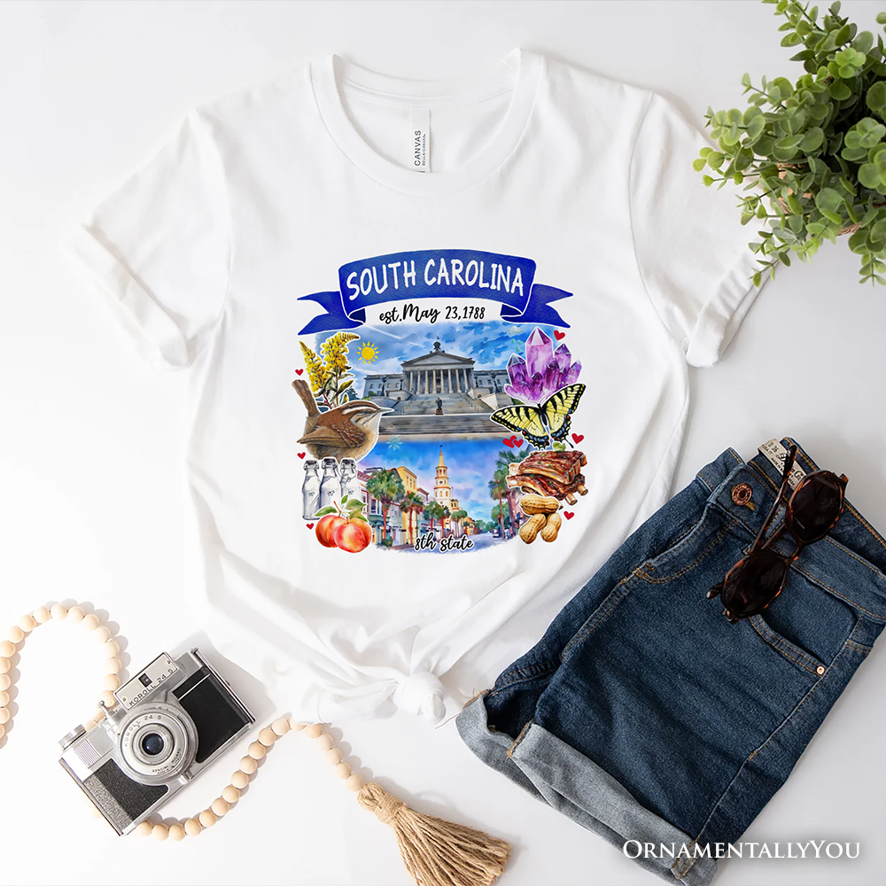 Artistic South Carolina State Themes and Landmarks T-Shirt, Tee for History and Travel Lovers