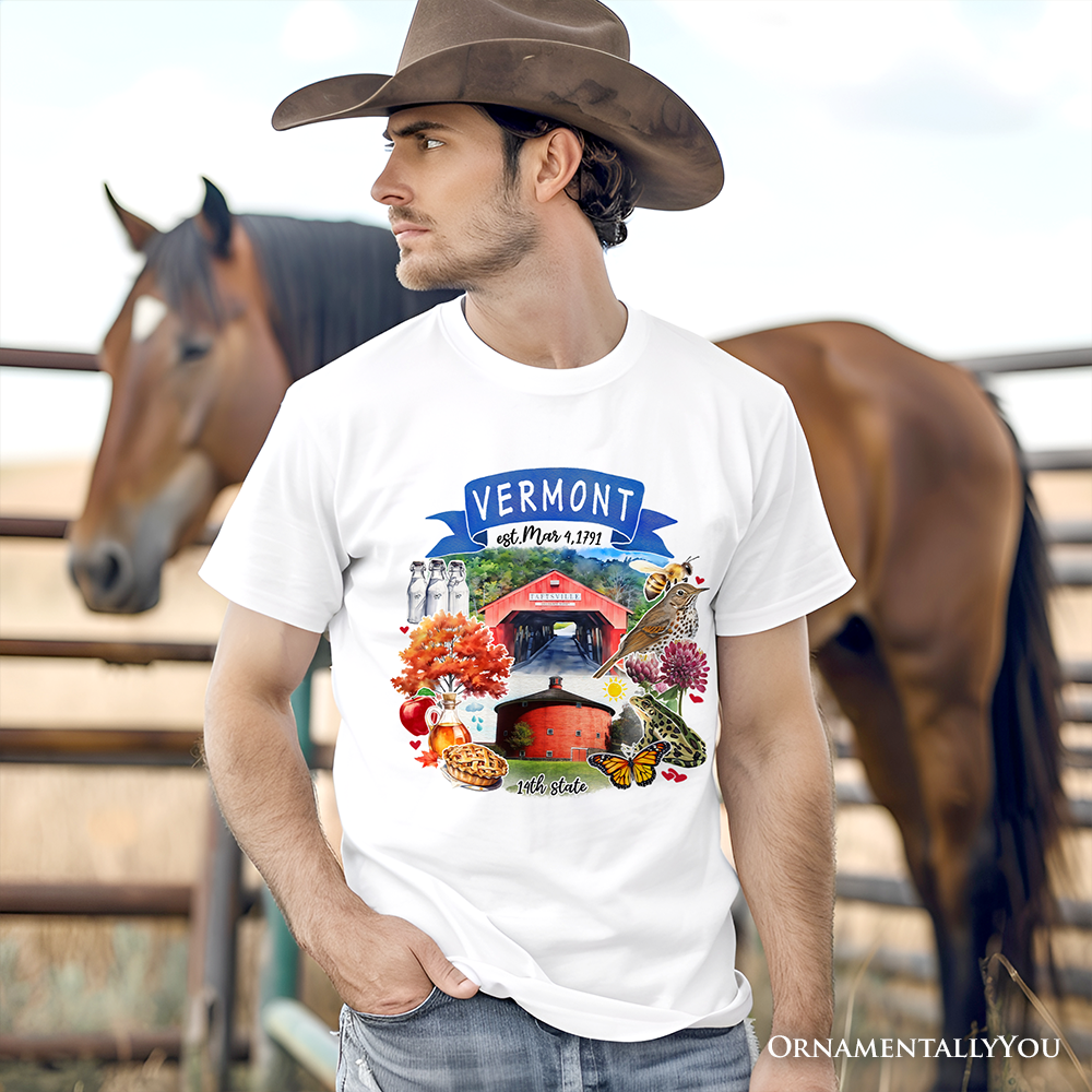 Artistic Vermont State Themes and Landmarks T-Shirt, Tee for History and Travel Lovers