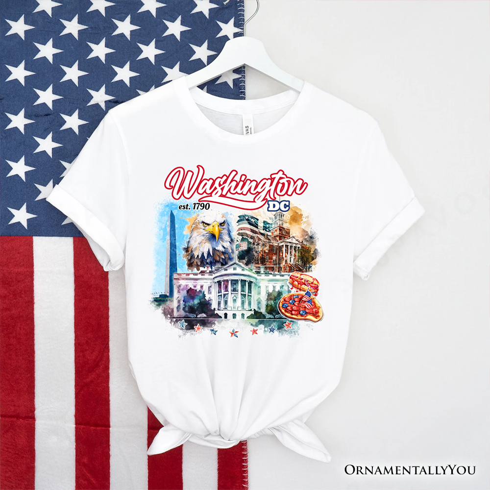 Artistic Washington DC T-Shirt, Landmarks of the Nation’s Capital, White House Travel Tee