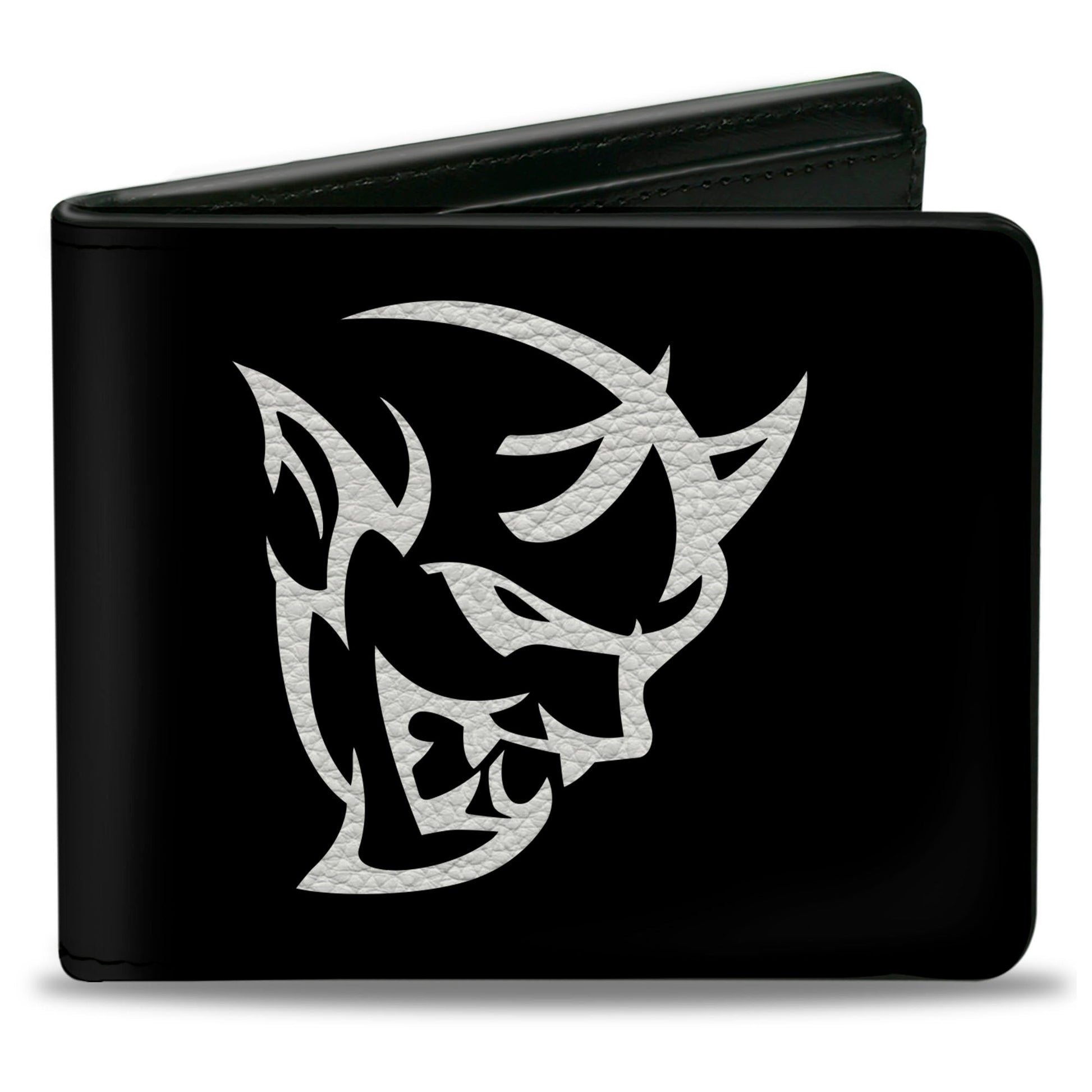 This awesome men's bi-fold wallet is made from premium vegan leather. It measures 4.0x3.5x0.5 Inches, and features the standard billfold, 5 card slots, and windowed ID holder. The logos are applied using advanced printing technologies, so the wallet will still look good after years of hard use. This product is made by Buckle-Down, Inc. and Officially Licensed by Dodge.