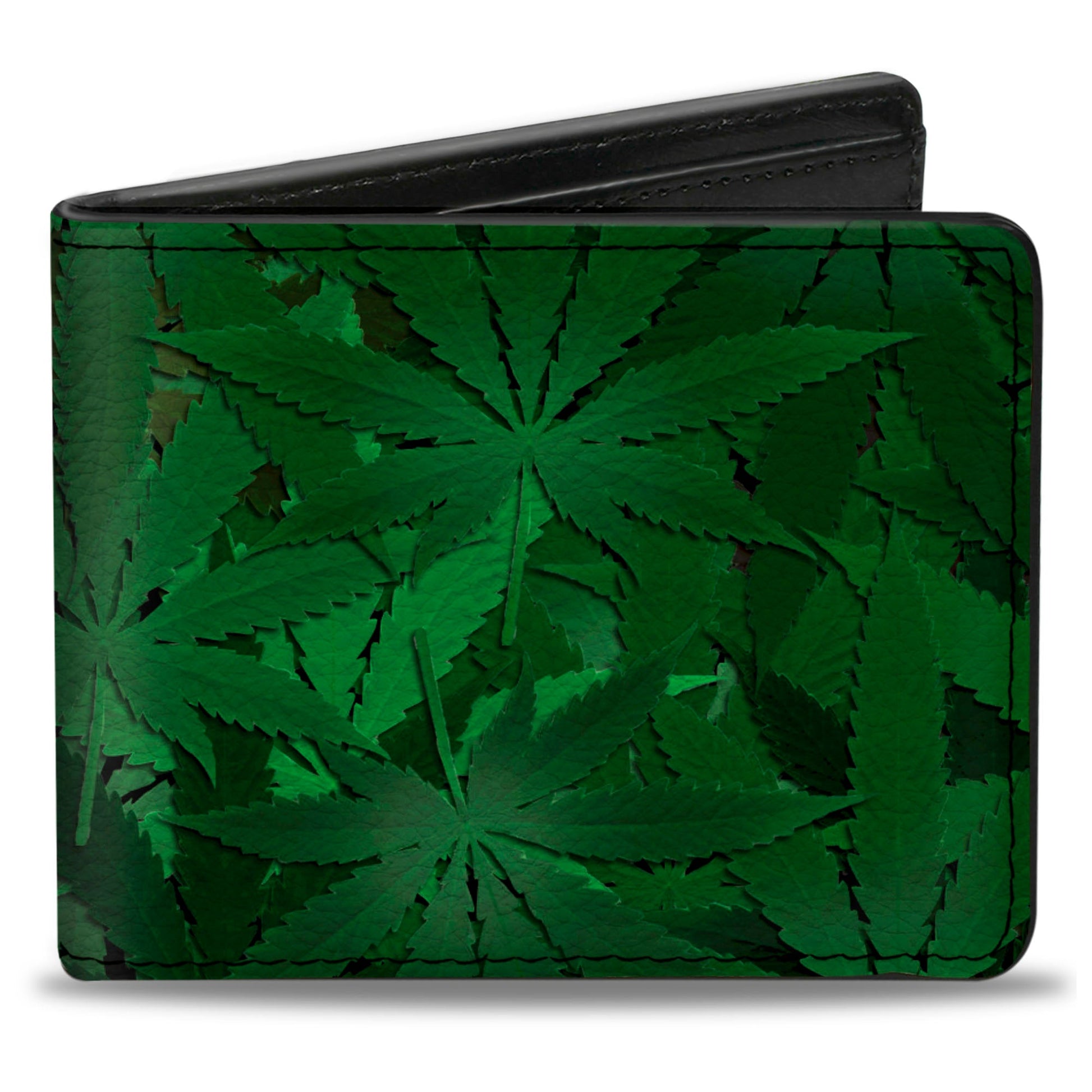 Bi-Fold Wallet - Marijuana Leaves Stacked