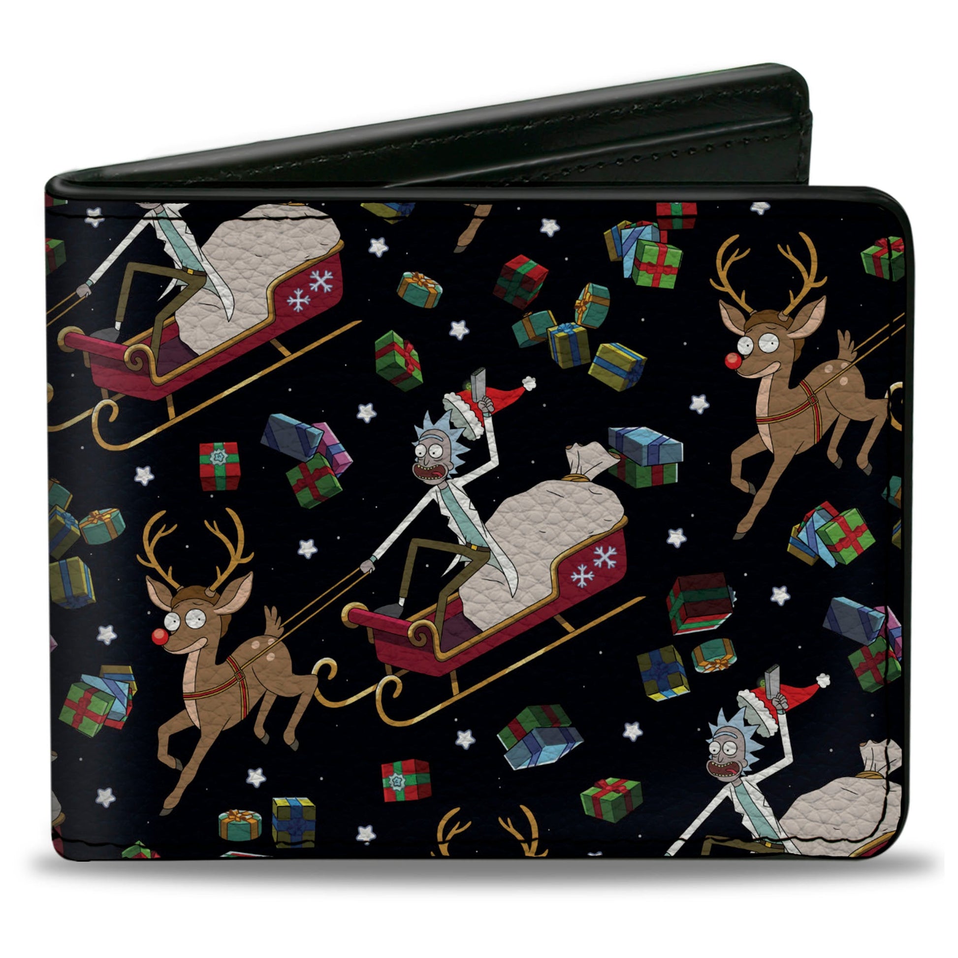 Bi-Fold Wallet - Rick and Morty Holiday Santa Rick Reindeer Sled Pose and Packages Collage Black