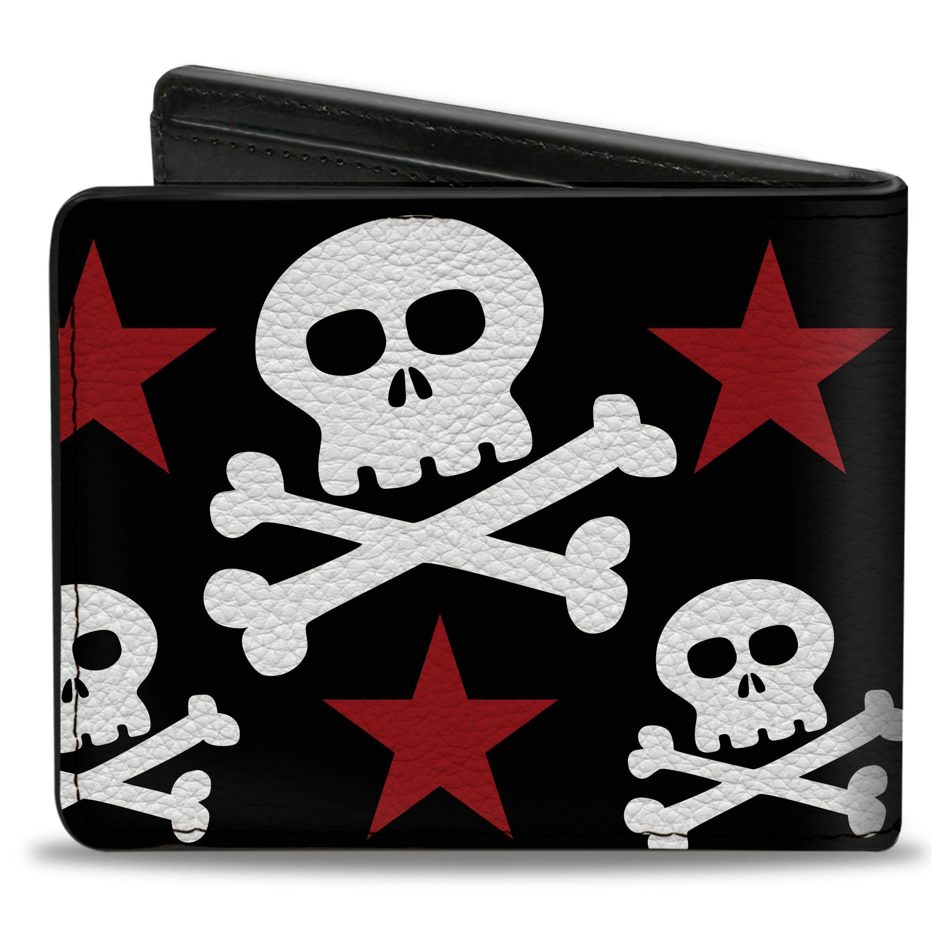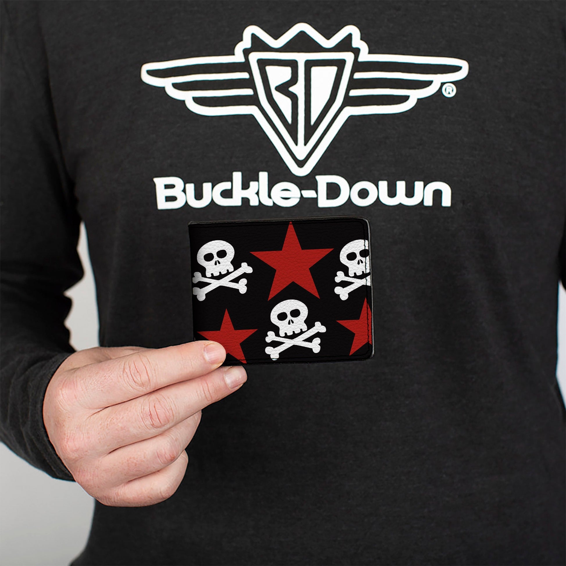 Bi-Fold Wallet - Skulls & Stars Black White Red