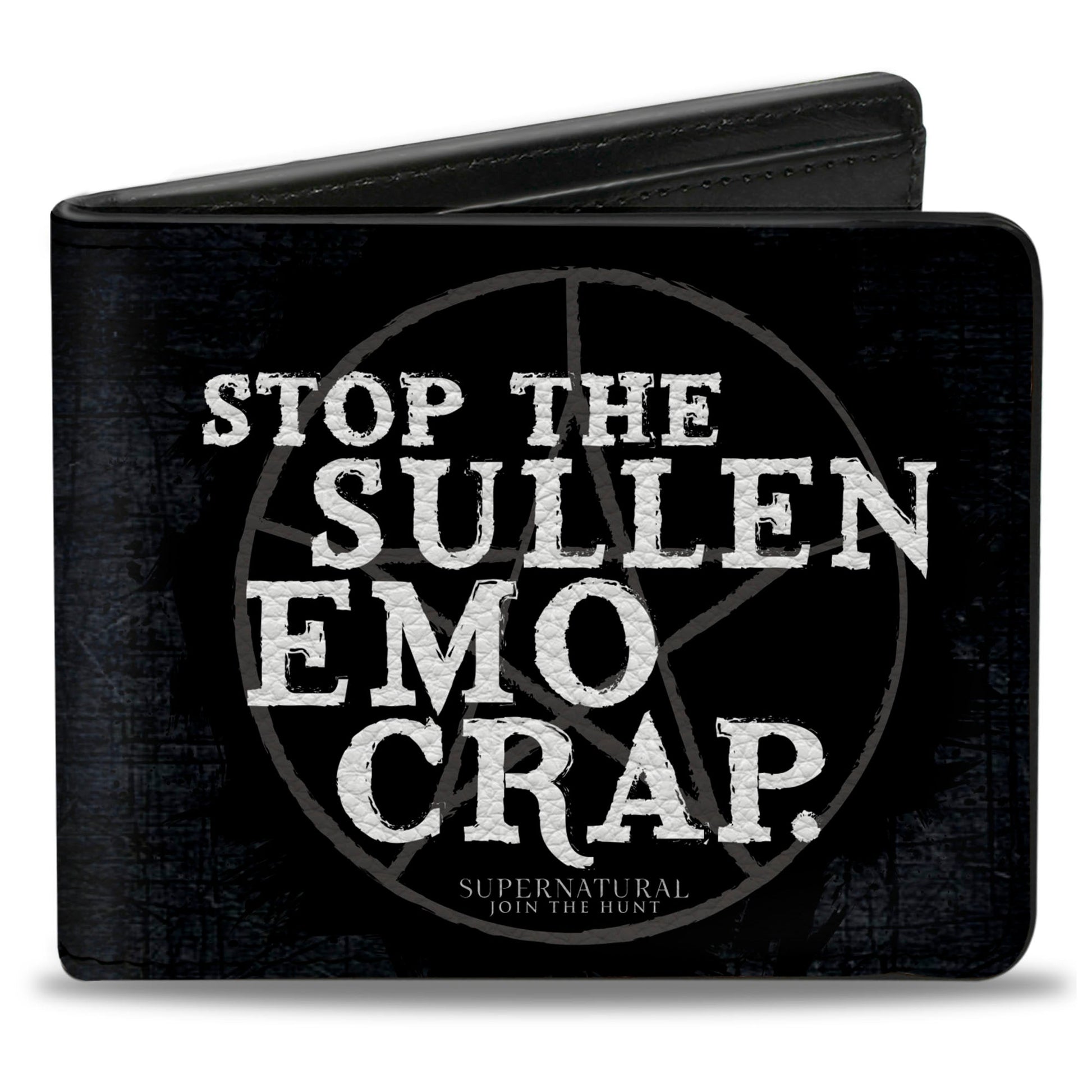 Bi-Fold Wallet - STOP THE SULLEN EMO CRAP Pentagram Black Grays White