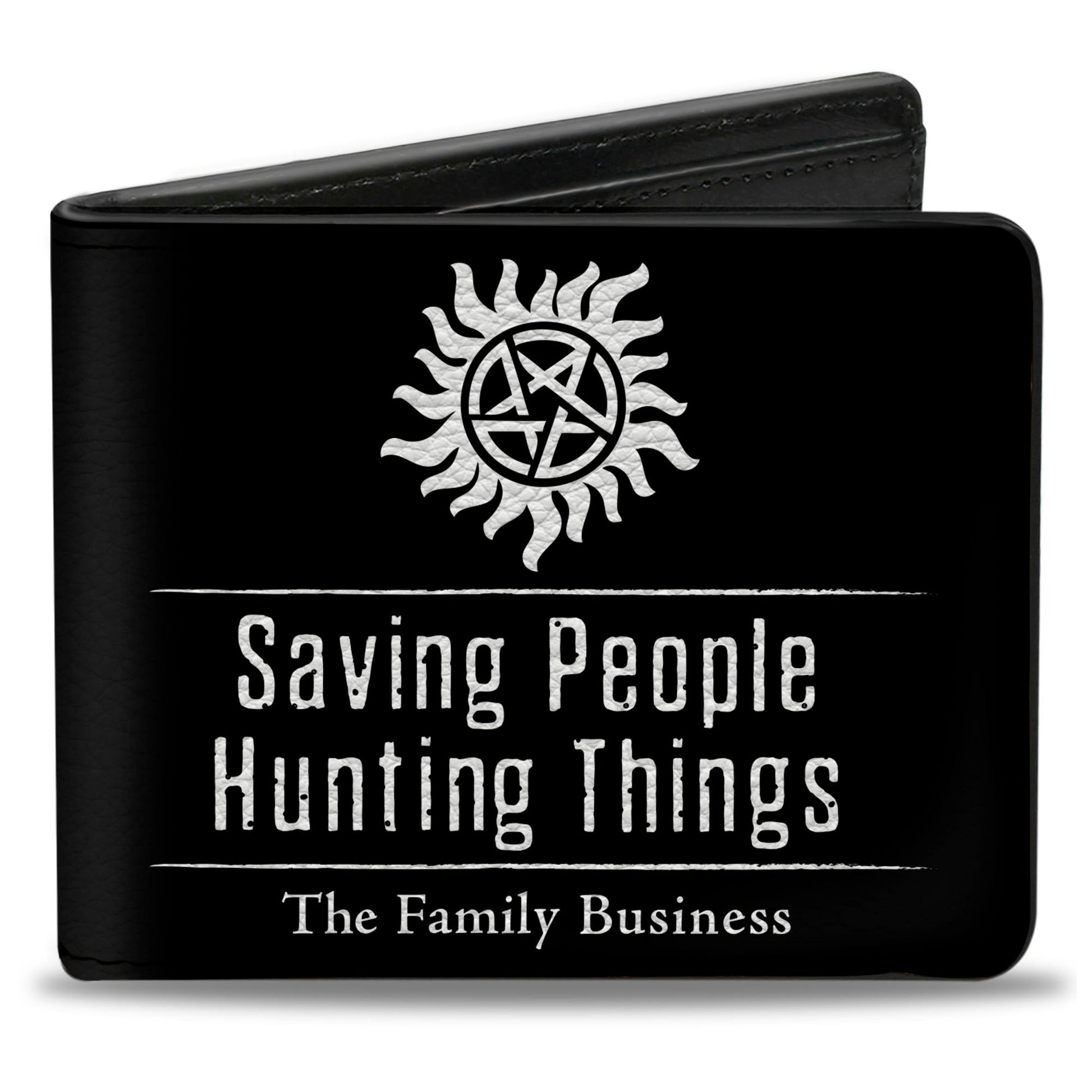 Bi-Fold Wallet - Winchster Pentagram SAVING PEOPLE HUNTING THINGS-THE FAMILY BUSINESS + Logo Black White