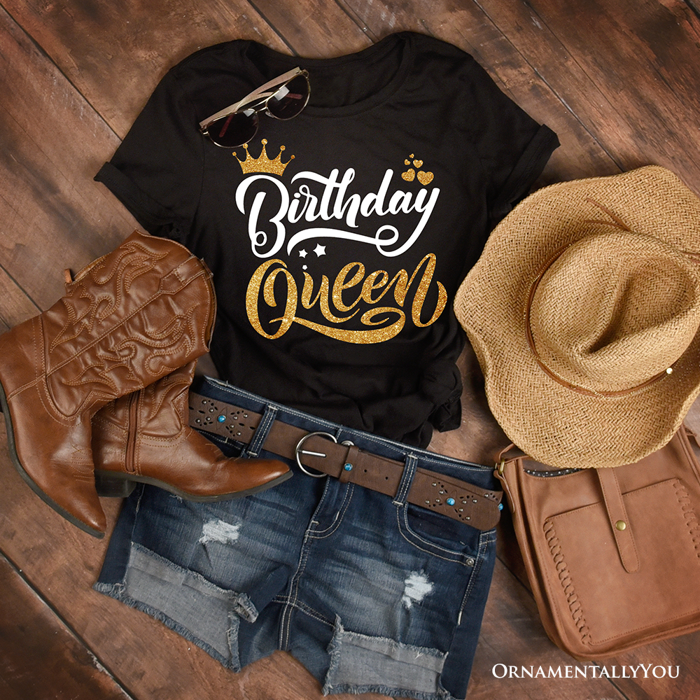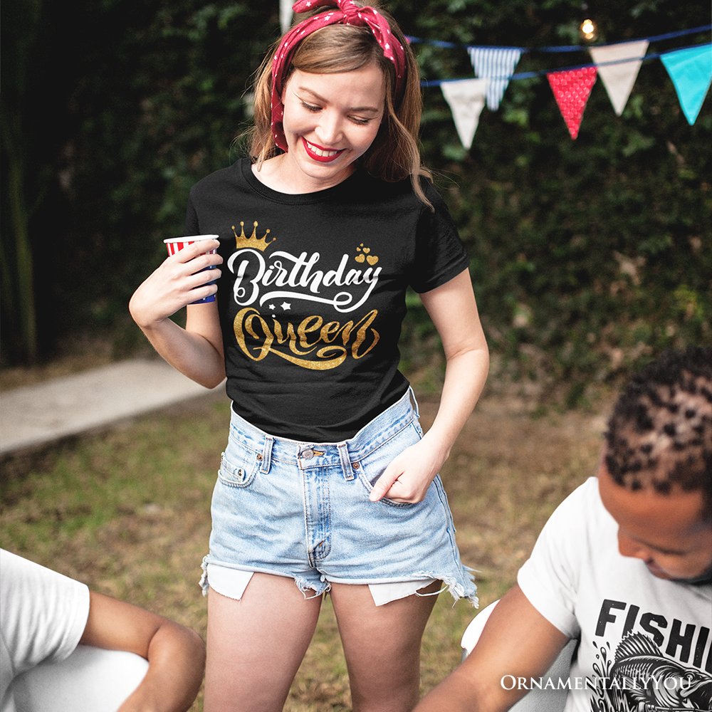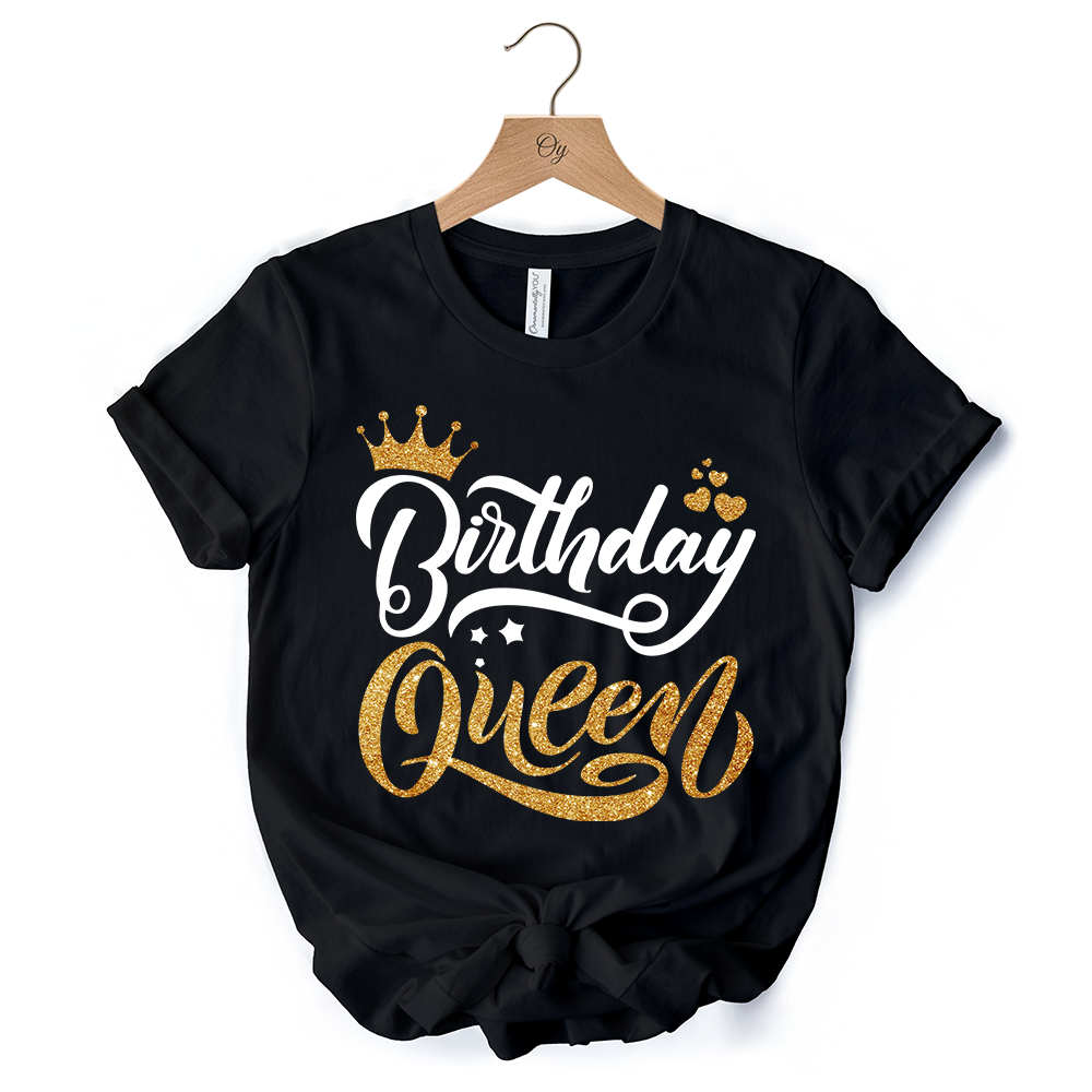 Birthday Queen T-Shirt, Black Glam Party Tee for Stylish Women