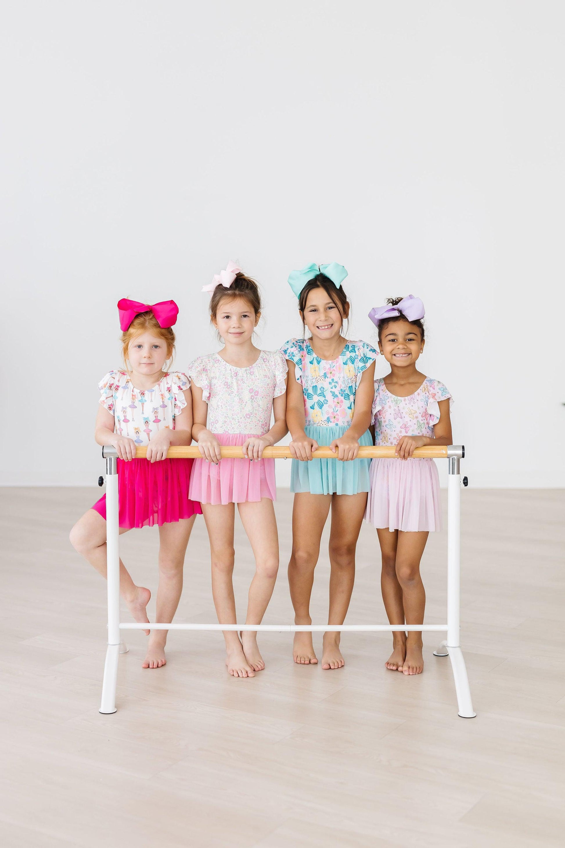 Our leotards are perfect for your tiny ballerina's first dance class.  Our founder created them when she couldn't find a cute leotard, in a tiny size, for Mila's first dance class.  Everything was either too big or the fit was totally wrong.  Not only did Mila wear these leotards for dance class, she wore them to play around the house or in the backyard with rain boots.