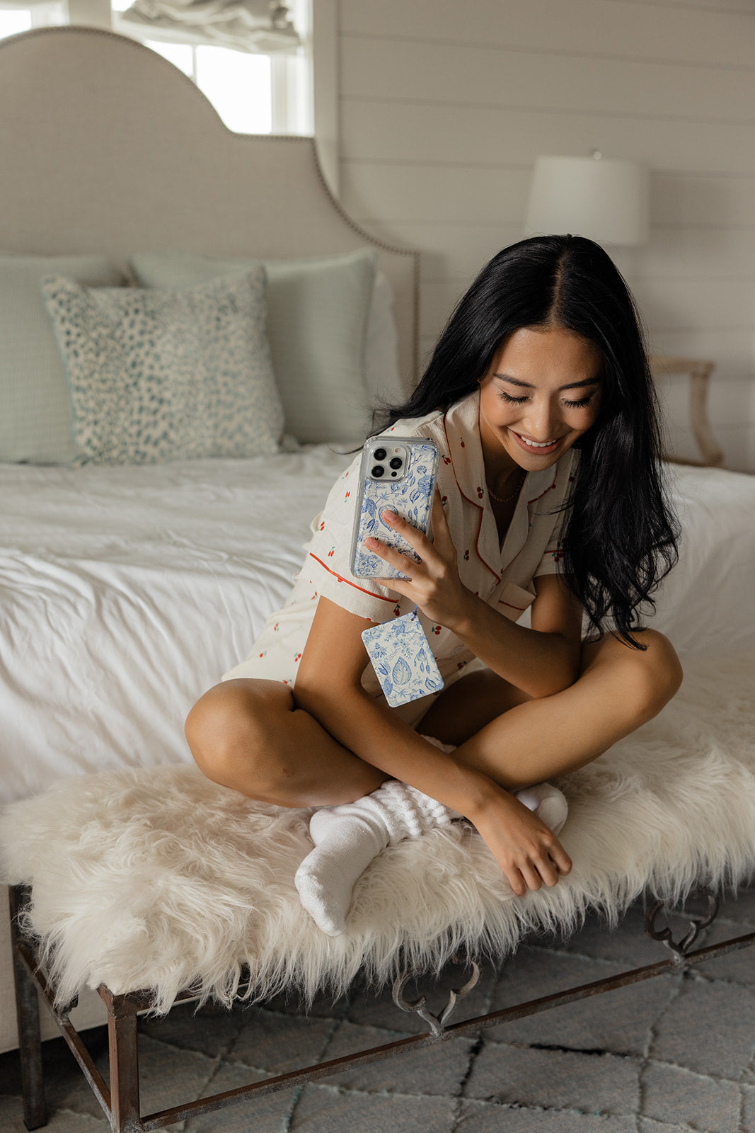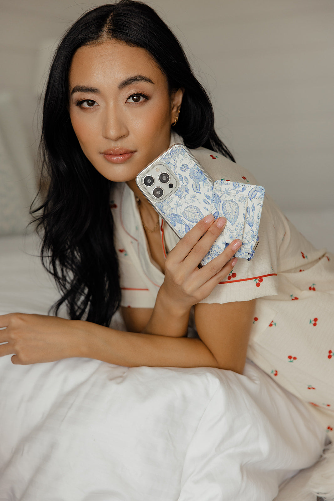 Case Design: Blue deltware floral on a white backgroundFinger Strap Color: Blue deltware floral on a white background