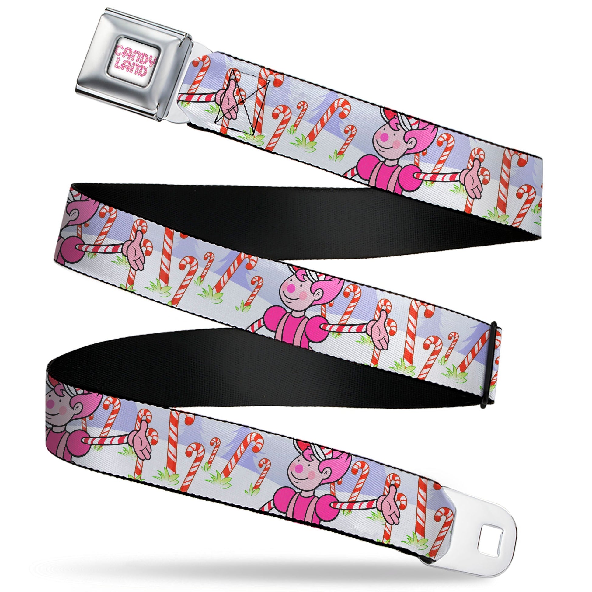 CANDY LAND Game Logo White/Pink Seatbelt Belt - Candy Land Mr. Mint Pose and Candy Canes Multi Color Webbing