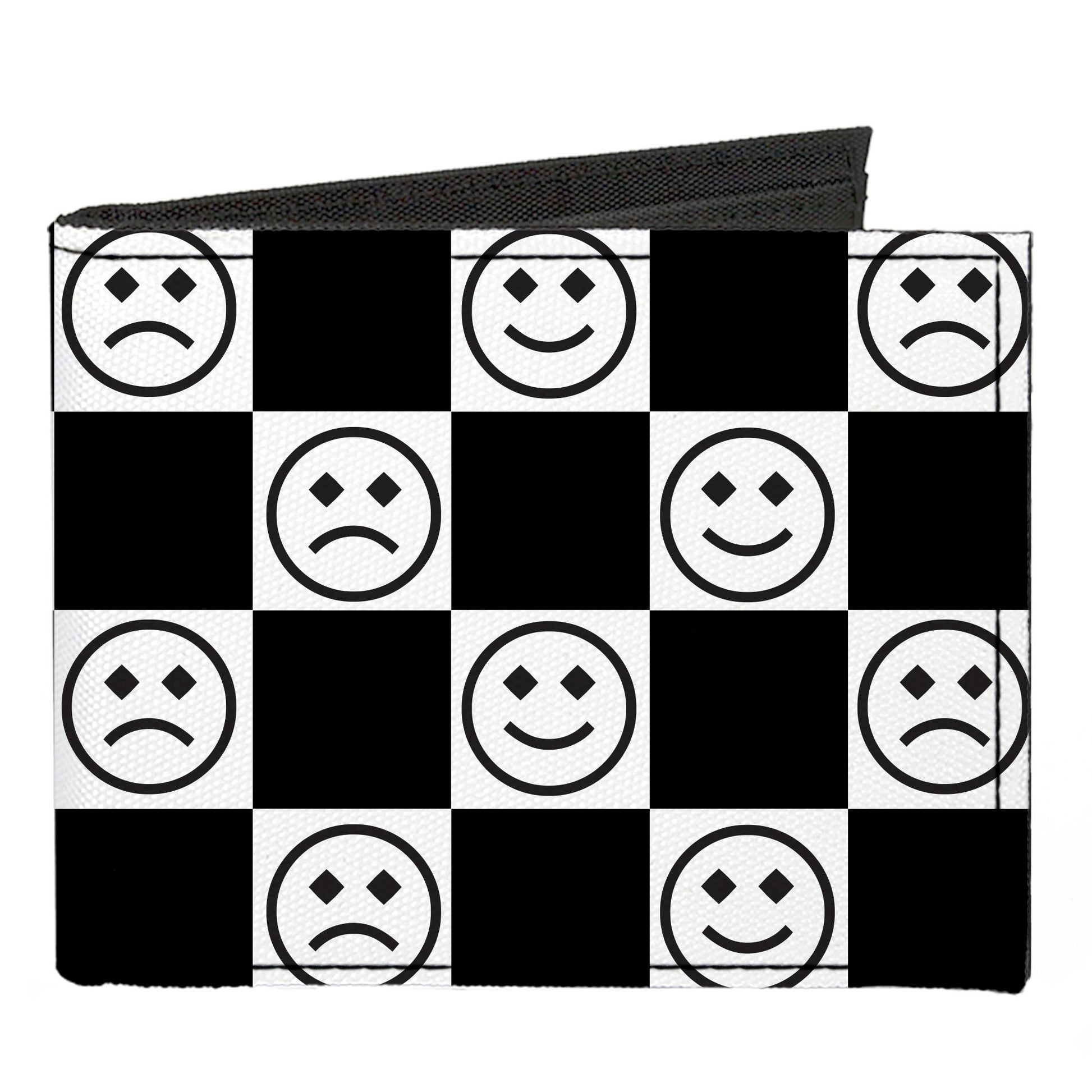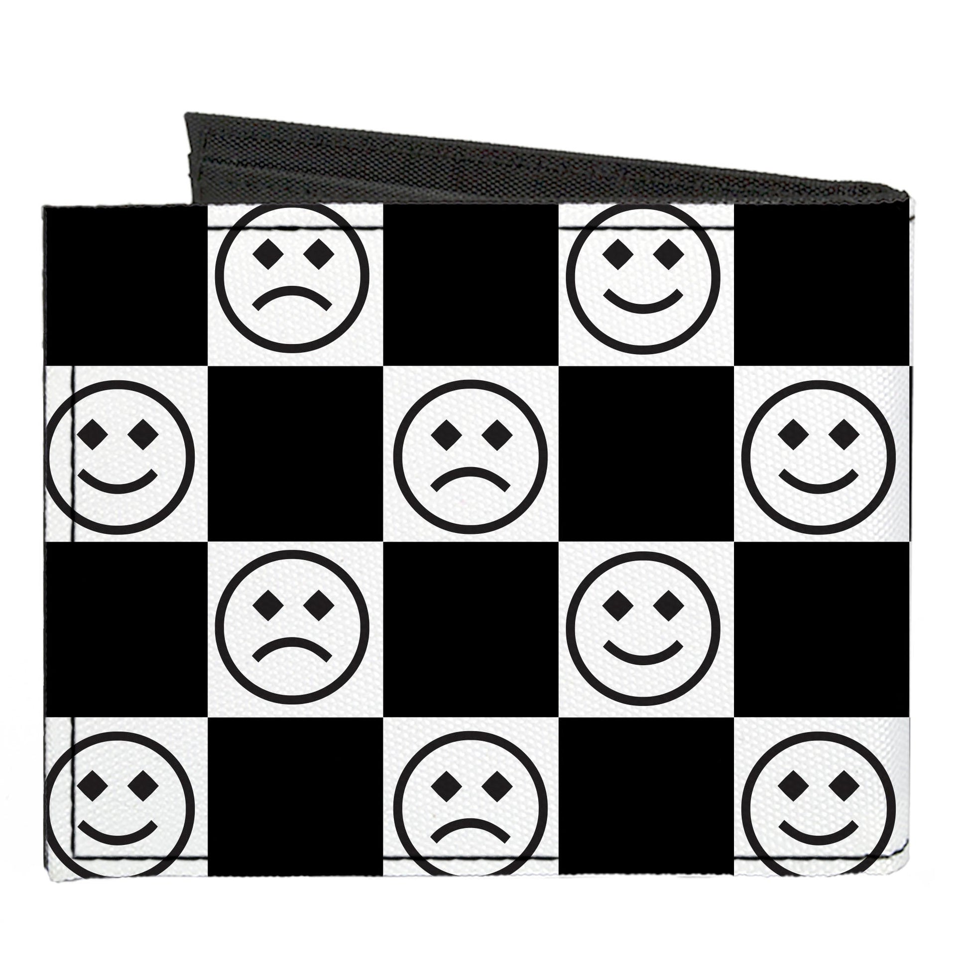Canvas Bi-Fold Wallet - Smiley Sad Face Checker Black/White