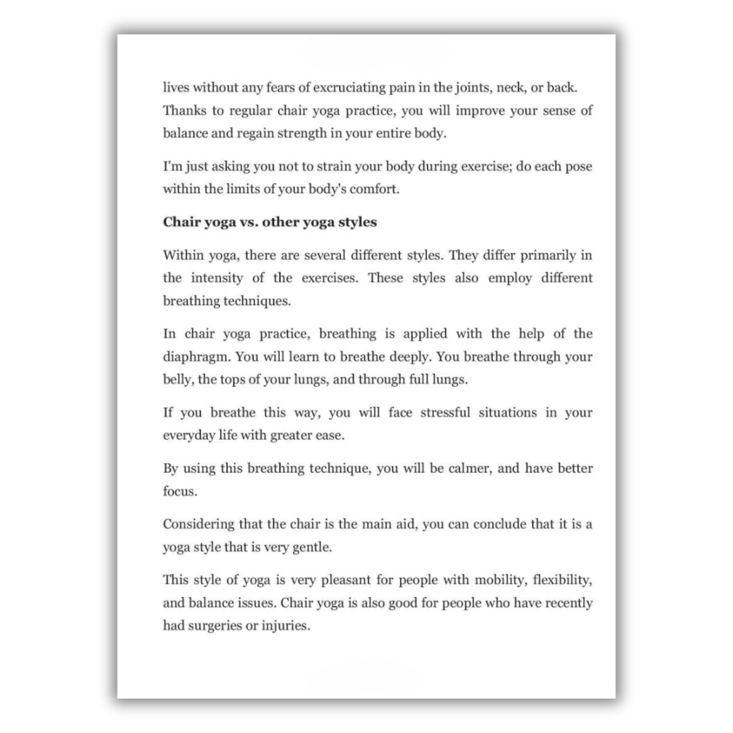 This book is perfect for seniors who want to improve their physical and mental health, but who may be limited by their mobility or existing health conditions. Gentle and low-impact Chair Yoga exercises can be done by anyone, regardless of their fitness level.
