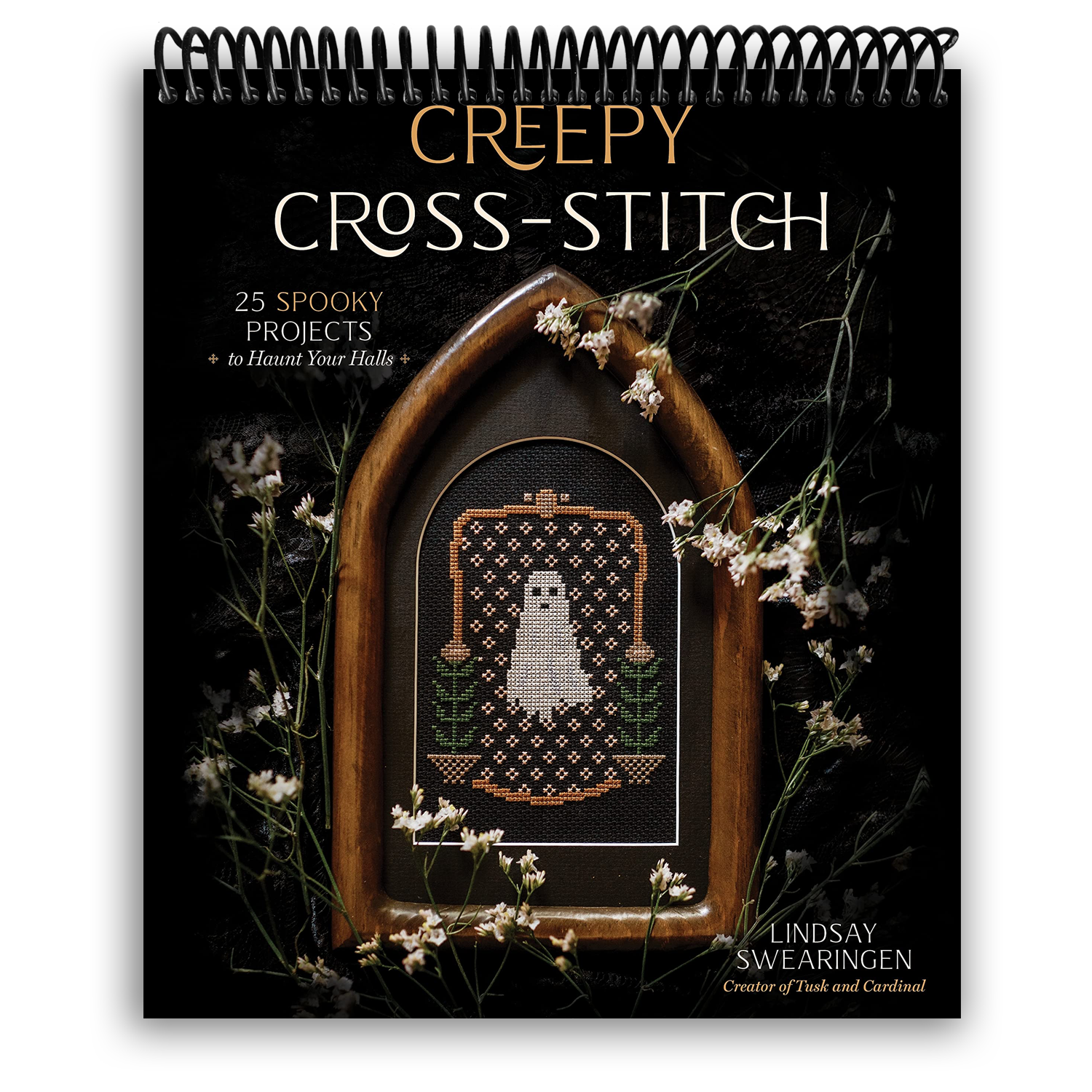 Fun and easy to learn, cross-stitch is an art form that truly anybody can master. Lindsay gives you a crash course in the basics to ensure you have all the materials and techniques you need to start off on the right foot. Then, dive into her incredible patterns and stitch yourself some oddities that range from quirky to downright eerie. Anyone with an appreciation for the macabre will swoon for patterns like Lovers’ Graves, which features twin headstones and a heart-shaped weeping willow. Meanwhile, the ghosts, ghouls and ghastly bats of Trick or Treat and Haunted Wings are perfect pieces to hang on your wall to keep the spirit of Halloween in your home year-round.