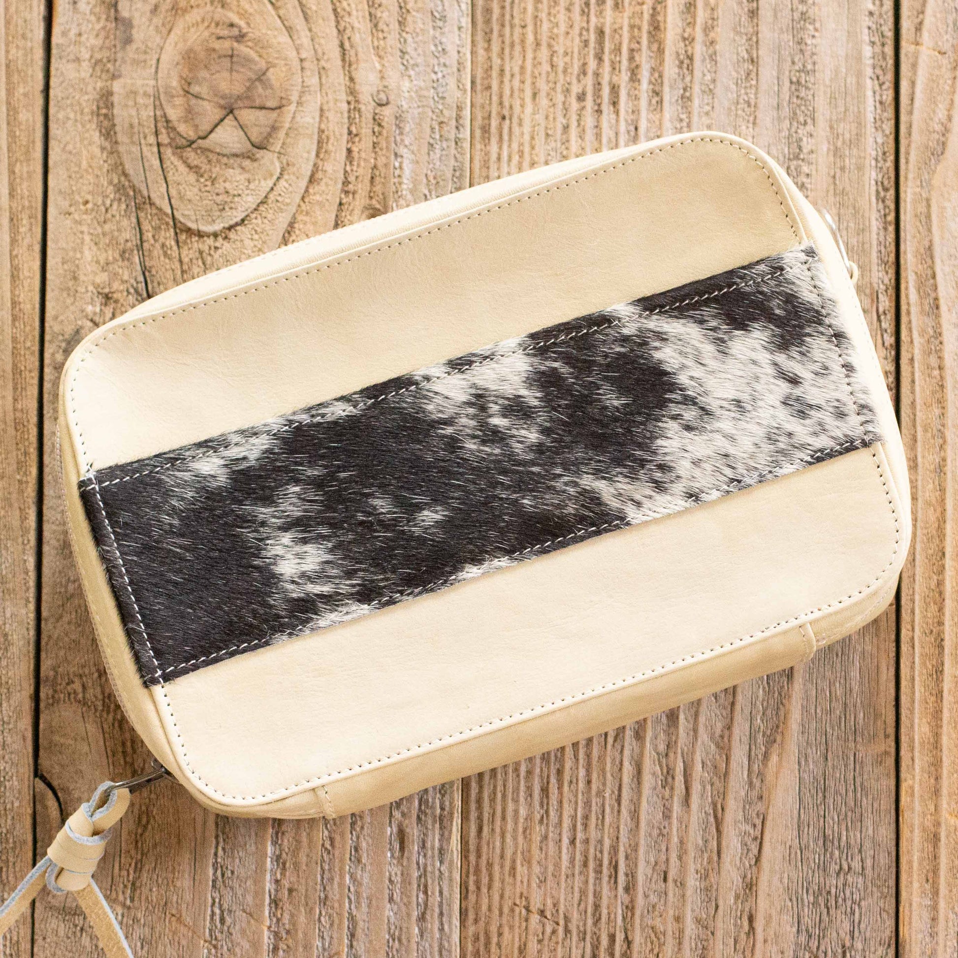 Crafted from high-quality leather with a striking cowhide accent on the front, the Crossbody Wallet offers a unique blend of modern design and timeless craftsmanship. Choose from four beautiful cowhide styles to match your personal taste. The wide YKK zipper opens ¾ of the way around the bag, making it easy to access everything inside.