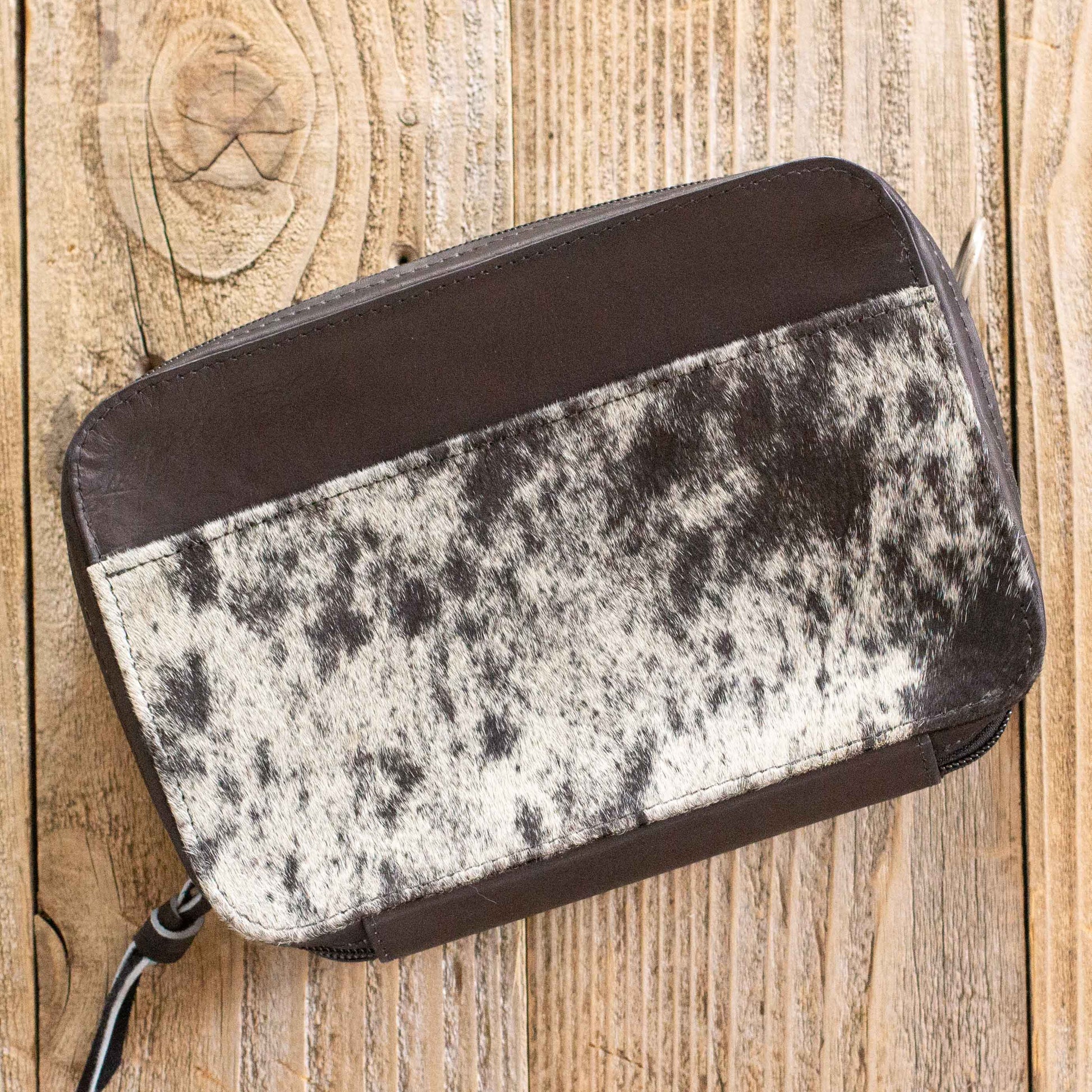Crafted from high-quality leather with a striking cowhide accent on the front, the Crossbody Wallet offers a unique blend of modern design and timeless craftsmanship. Choose from four beautiful cowhide styles to match your personal taste. The wide YKK zipper opens ¾ of the way around the bag, making it easy to access everything inside.