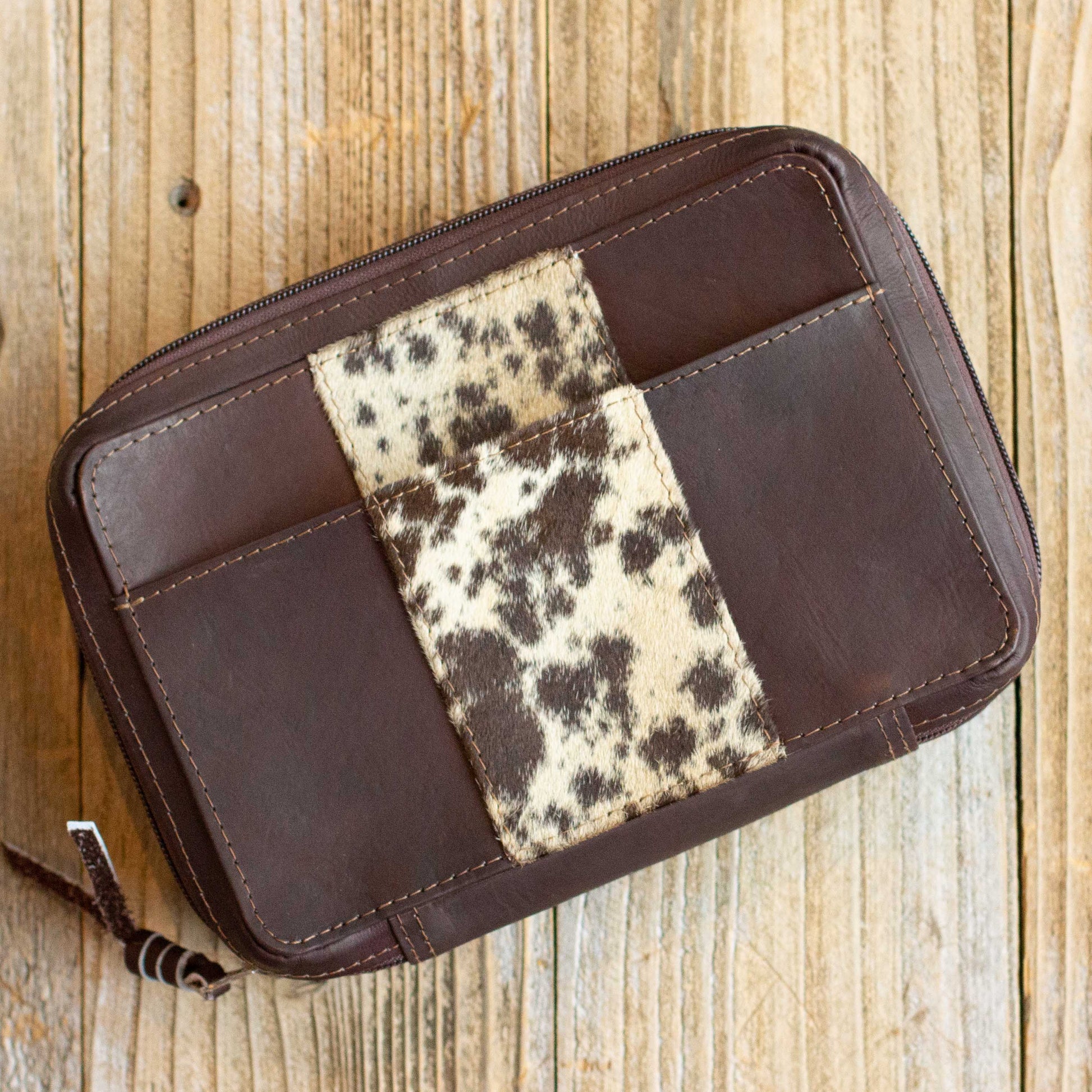 Crafted from high-quality leather with a striking cowhide accent on the front, the Crossbody Wallet offers a unique blend of modern design and timeless craftsmanship. Choose from four beautiful cowhide styles to match your personal taste. The wide YKK zipper opens ¾ of the way around the bag, making it easy to access everything inside.