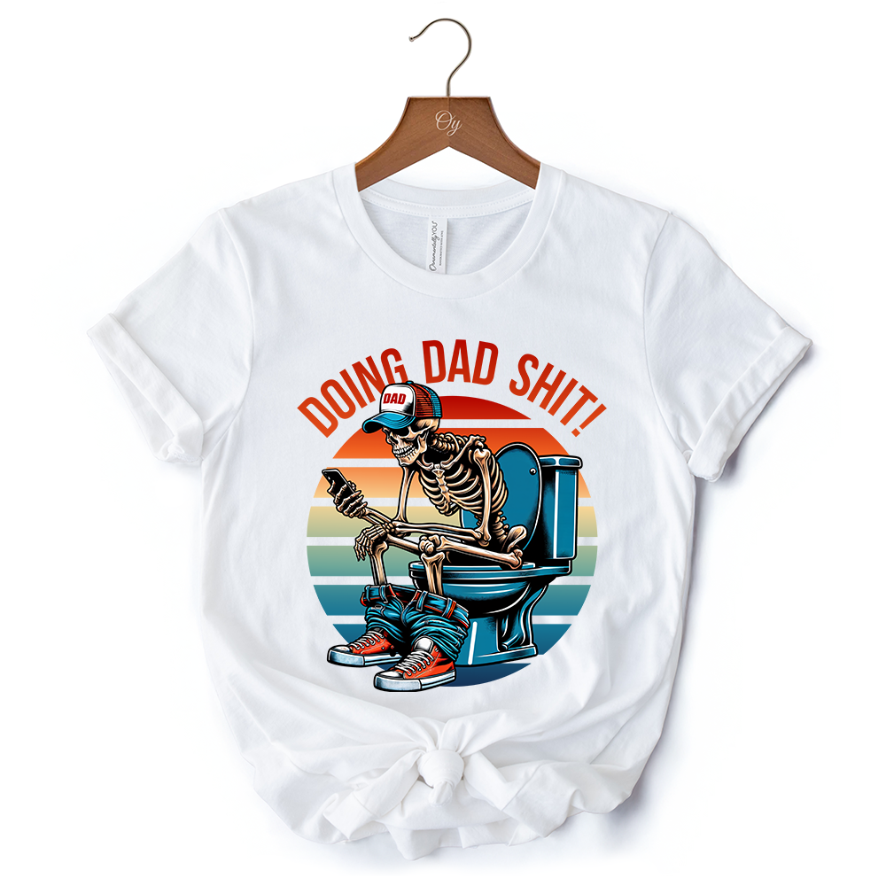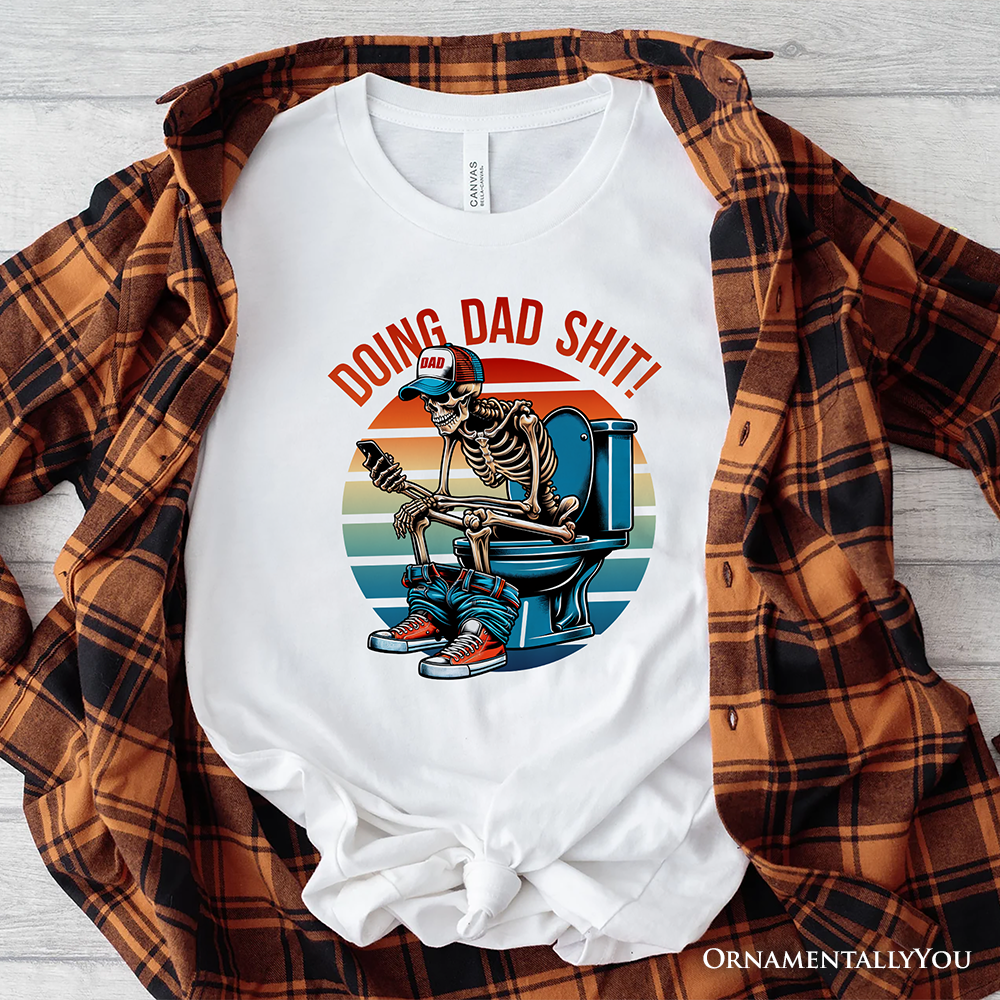 Doing Dad Stuff Skeleton T-Shirt, White and Black Funny Retro Tee for Bold Fathers