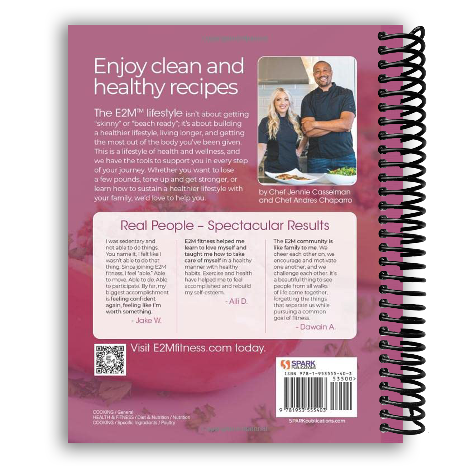 Our cookbooks are filled with colorful food photos, easy-to-follow recipes, and typical ingredients you may already have at home! The Beef & Poultry cookbook is the debut book of its series from the wildly popular online E2M Fitness program. It features many of your comfort food favorites with lighter ingredients like Meatballs, Korean Beef bowl, Stuffed Zucchini, and family style recipes everyone will love! Also included are scratch seasoning blends and salad dressing recipes!