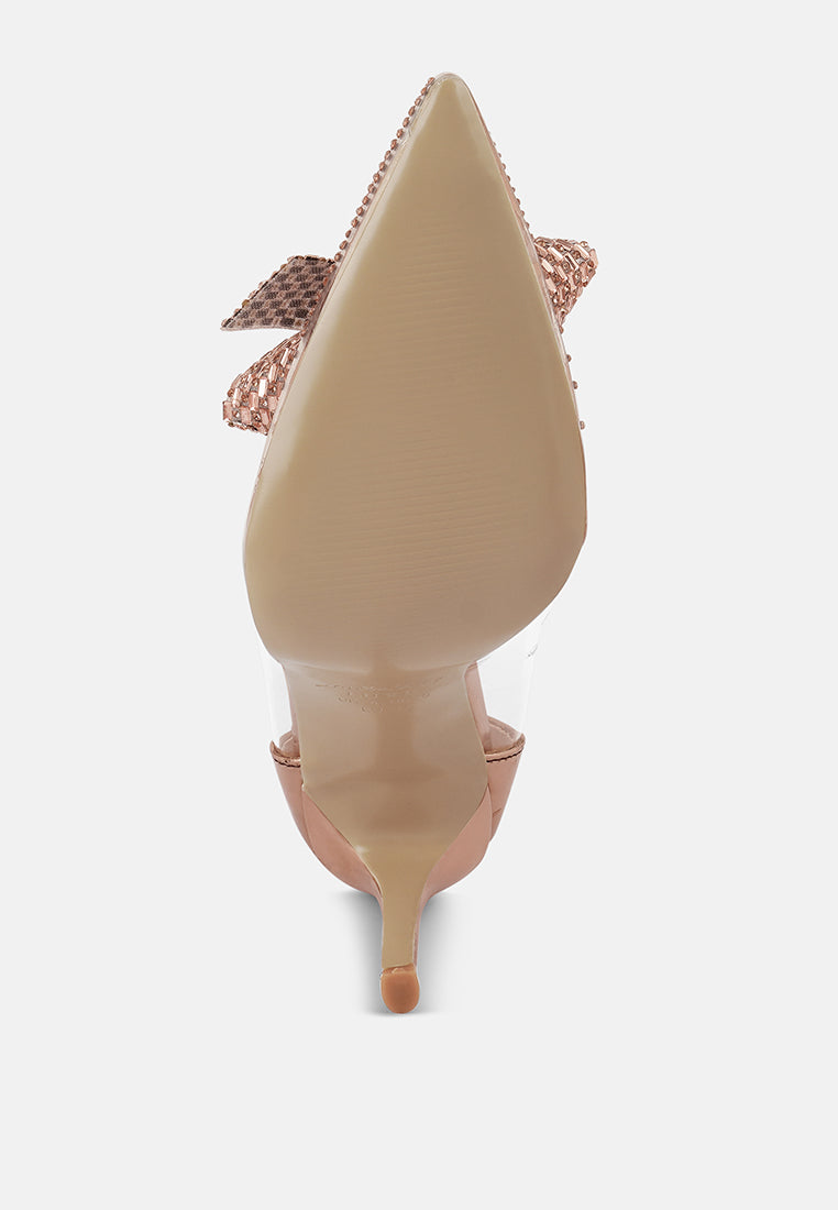Like a modern-day Cinderella, step into your new beginning looking like an elegant and alluring princess. The beautifully embellished rhinestones on the pumps look like glistening diamond droplets exhibiting opulence and vogue which would look stunning as wedding heels. The embellished bow amplifies the look of the clear pumps while the cushioned insoles cut strain making them a comfortable party pair.