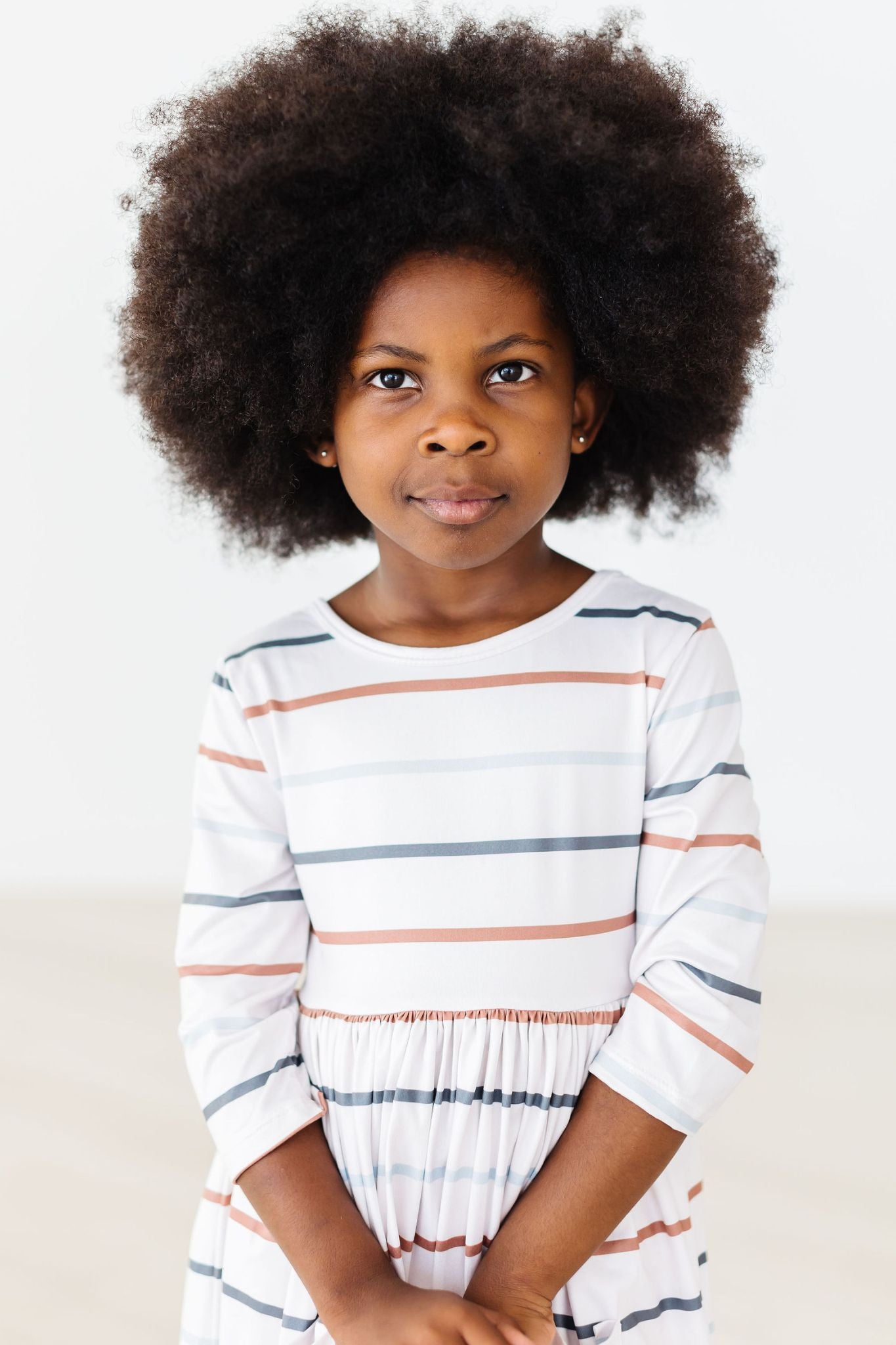 Scoop back and ballet neckline make getting dressed a breeze. Full skirt makes twirling extra fun.
