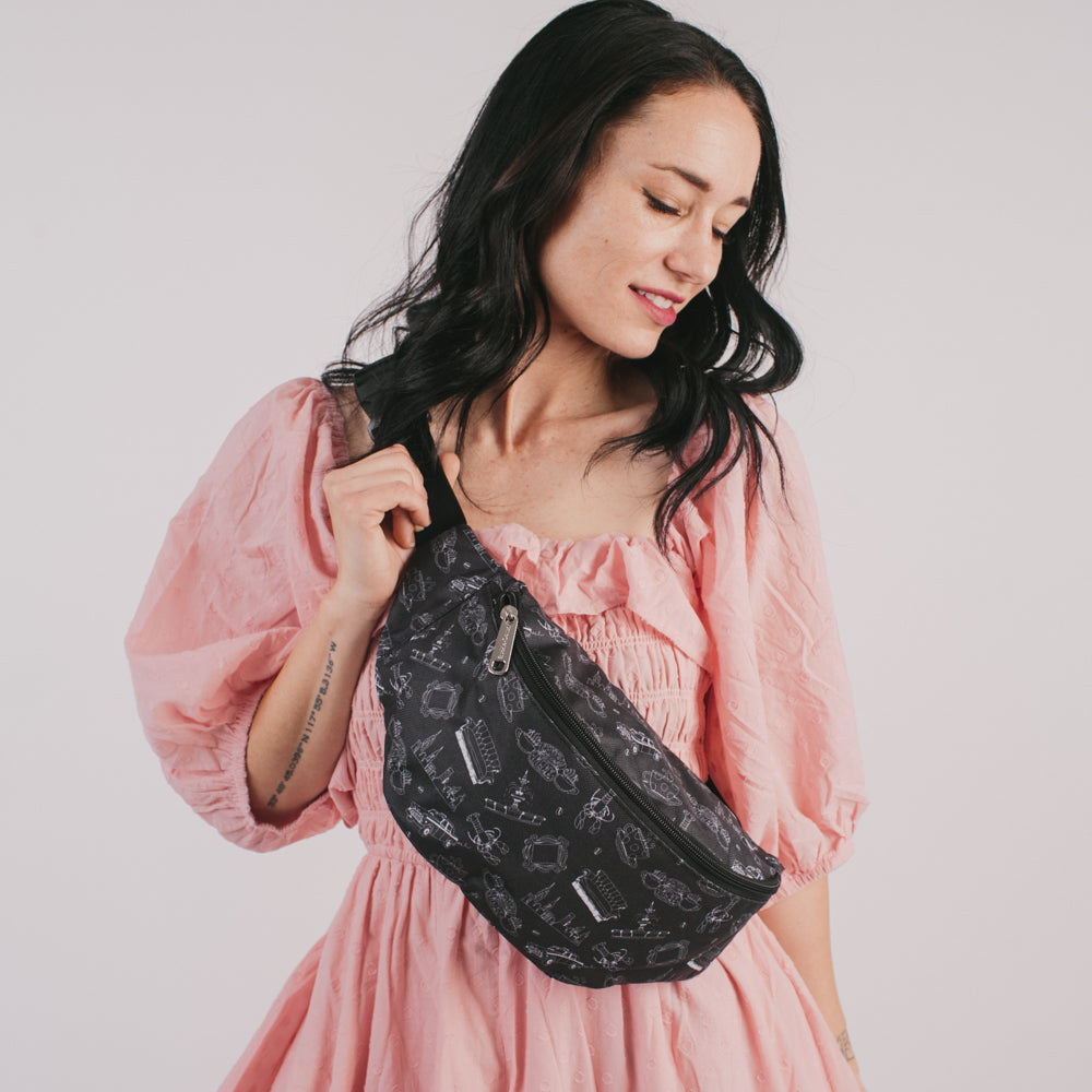 Fanny Pack - Friends Television Show Icons Outlines Scattered Black White