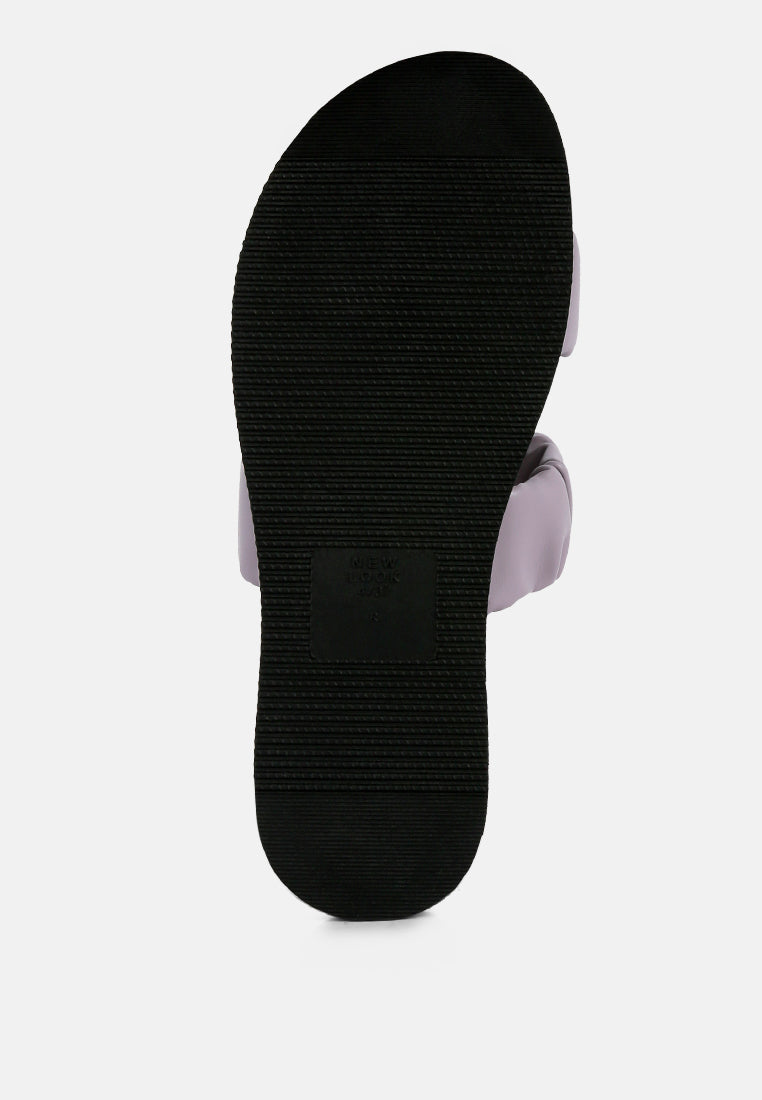 Soft and comfy - this pair of ruched strap slider sandals in the platform is a perfect leisure shoe. Comes with a padded insole and anti-slip rubber outsole.