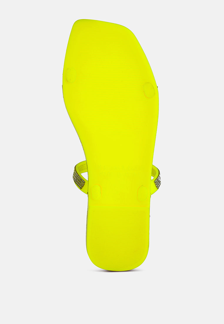 Water-resistant soft jelly flats with beautiful sparkling diamante detail studs along with the straps and edges. The casual, comfy streetwear flats look gorgeous on the feet.
