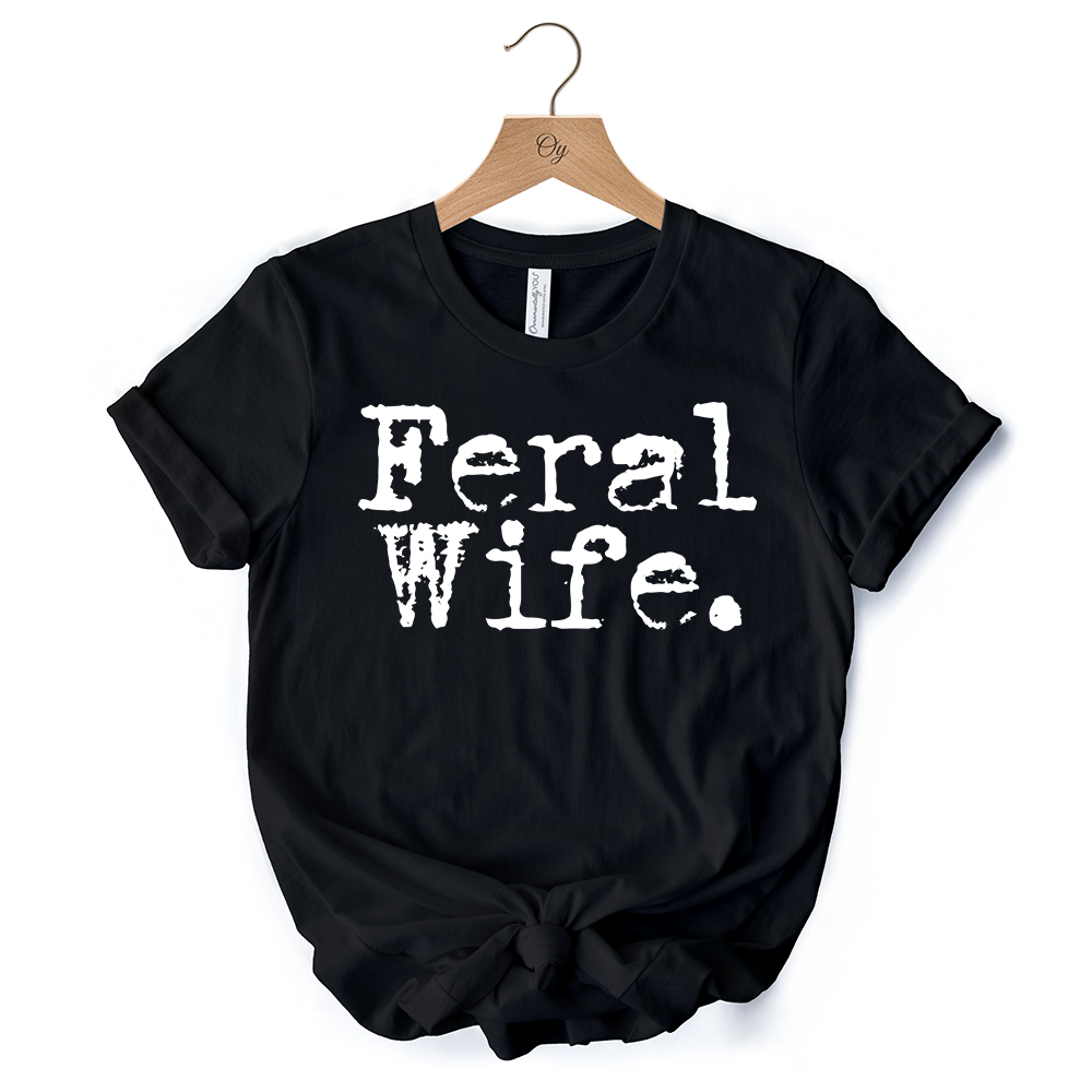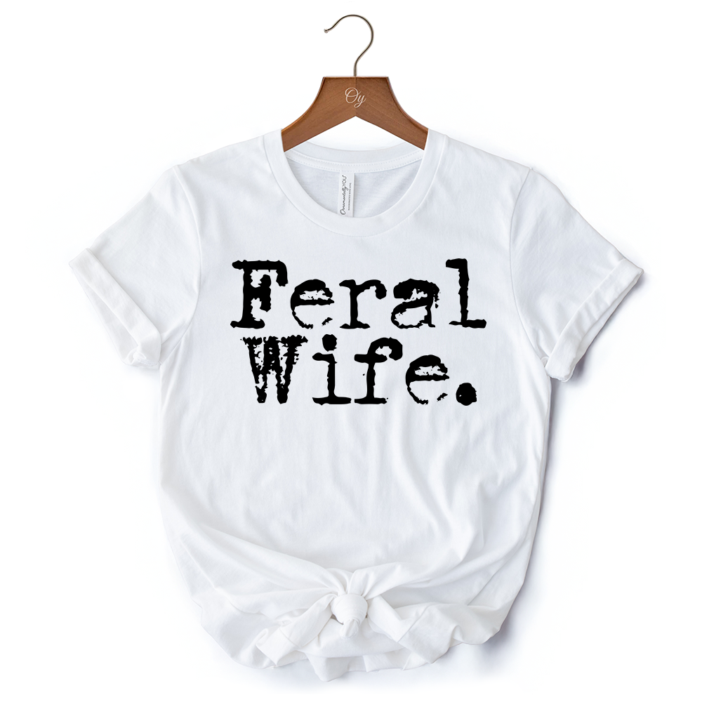 Feral Wife T-Shirt, White and Black Typography Tee for Bold Women and Moms