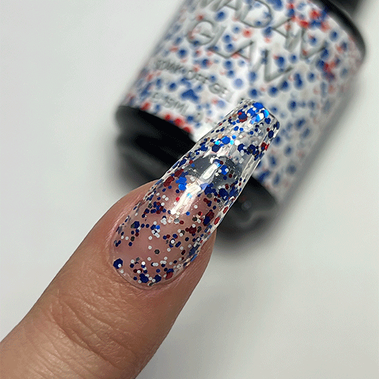 We salute you with a NEW glittery soak off gel polish. Add a touch of colorful sparkle to your 4th of July manicure.