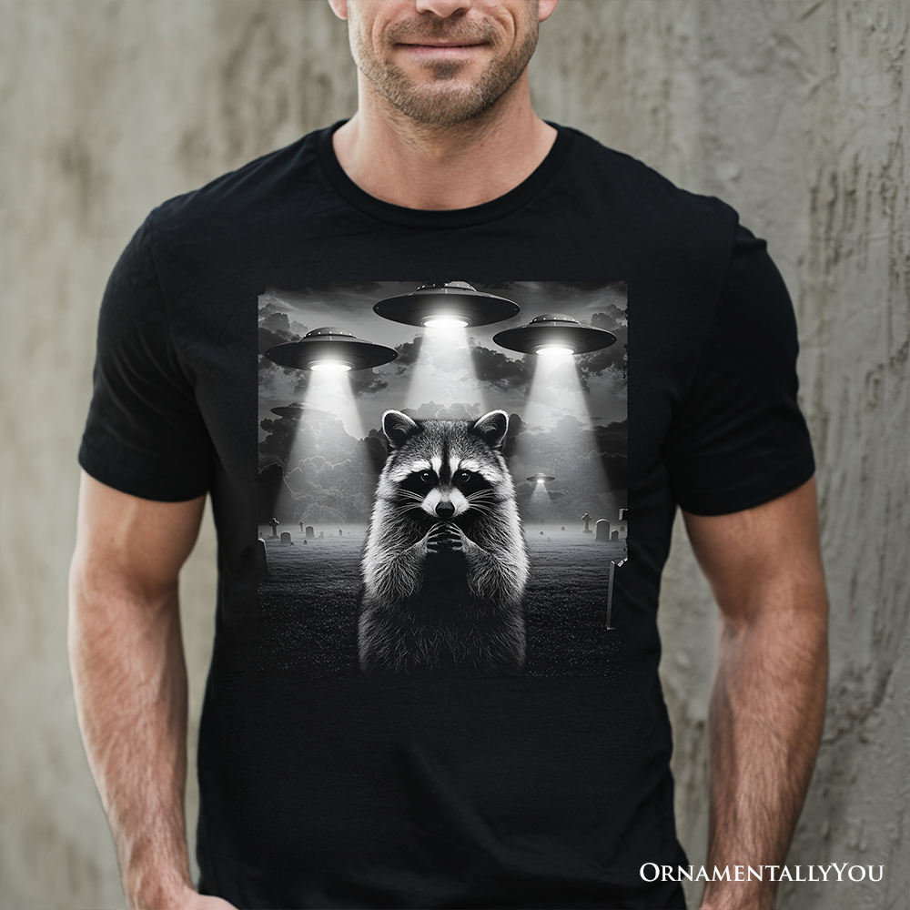 Get abducted by laughs and out-of-this-world style with this hilarious unisex black tee featuring a mischievous raccoon getting beamed up by a UFO! Perfect for space lovers, alien believers, and anyone who appreciates quirky humor, this comfortable and casual shirt is made for those who enjoy both cosmic adventures and woodland critters 🛸🦝🌌. Whether you're stargazing, gaming, or just chilling with friends, this lightweight tee makes a stellar statement with its bold design and universal fit. Ideal as a fun gift for sci-fi fans, conspiracy theorists, or raccoon enthusiasts, it’s your new go-to shirt for showing off some extraterrestrial attitude.