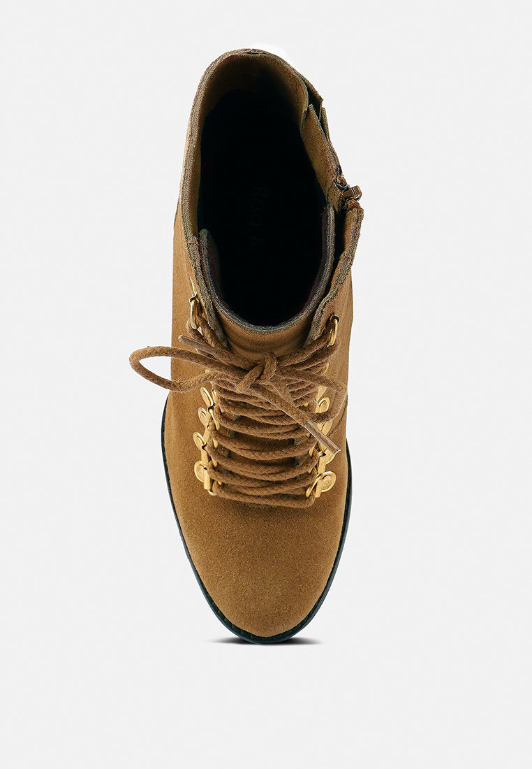Handcrafted in high quality genuine leather, this pair of ankle boot has antique metal eyelets which add charm of vintage. The side zipper opening makes it a comfy pair to wear.