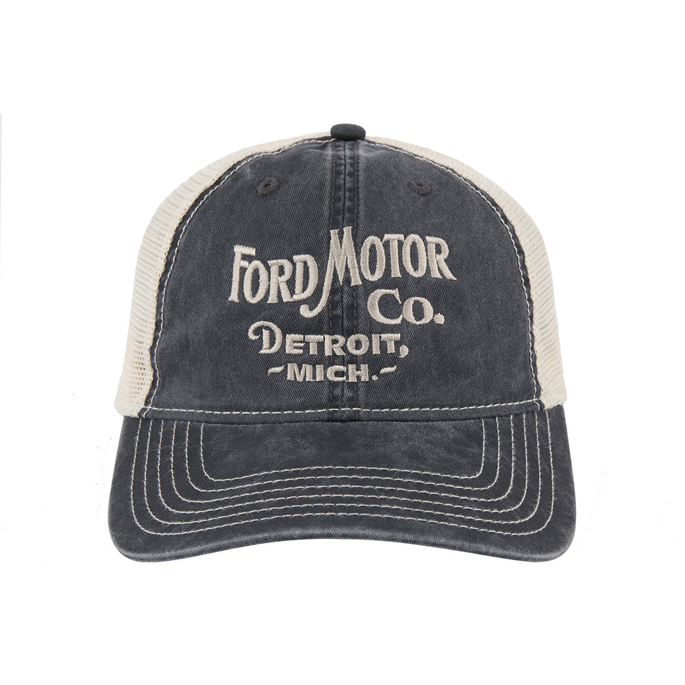 Hat - Ford Vintage Font Low Profile Trucker - Steel Blue/Khaki