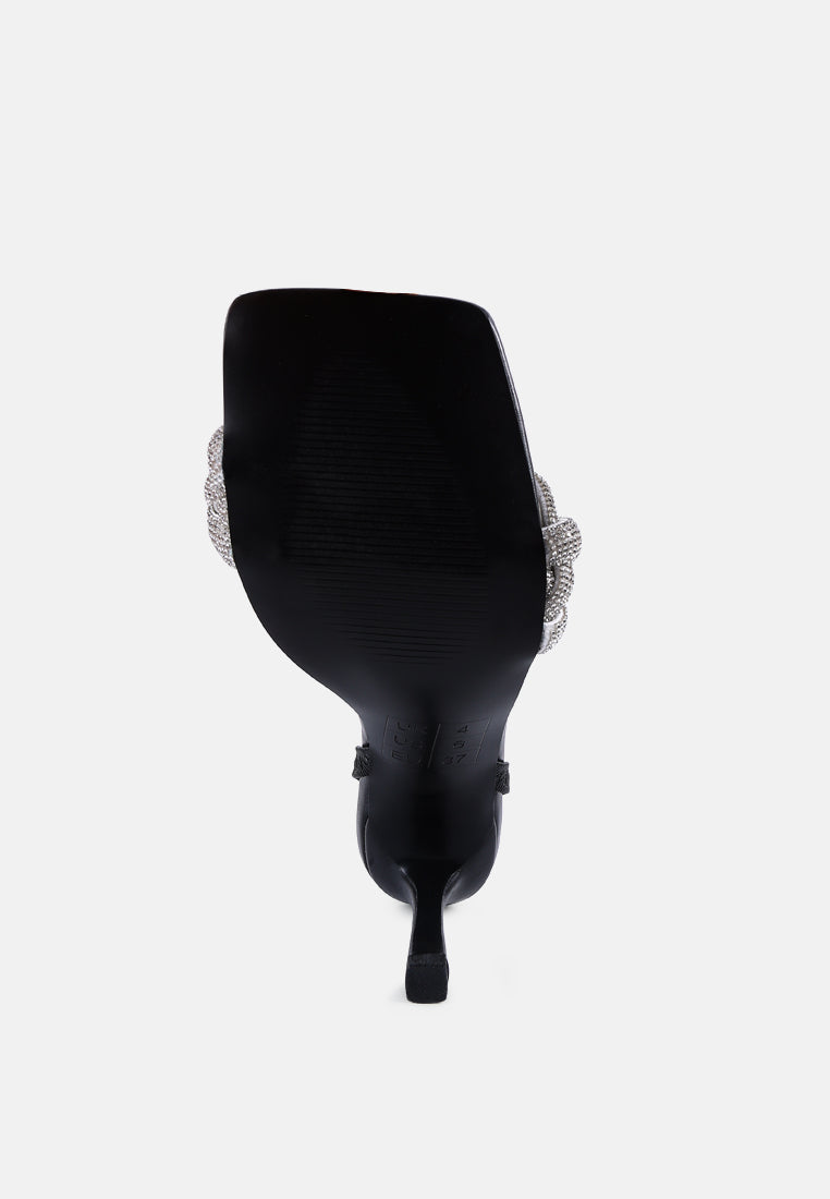The intricately adorned diamante detailing on the braided strap, along with the durable outsole and elasticated slingback for added support, make these sandals a perfect choice for a cocktail party. You'll feel absolutely gorgeous in our exquisite diamante braided pinheel sandals.