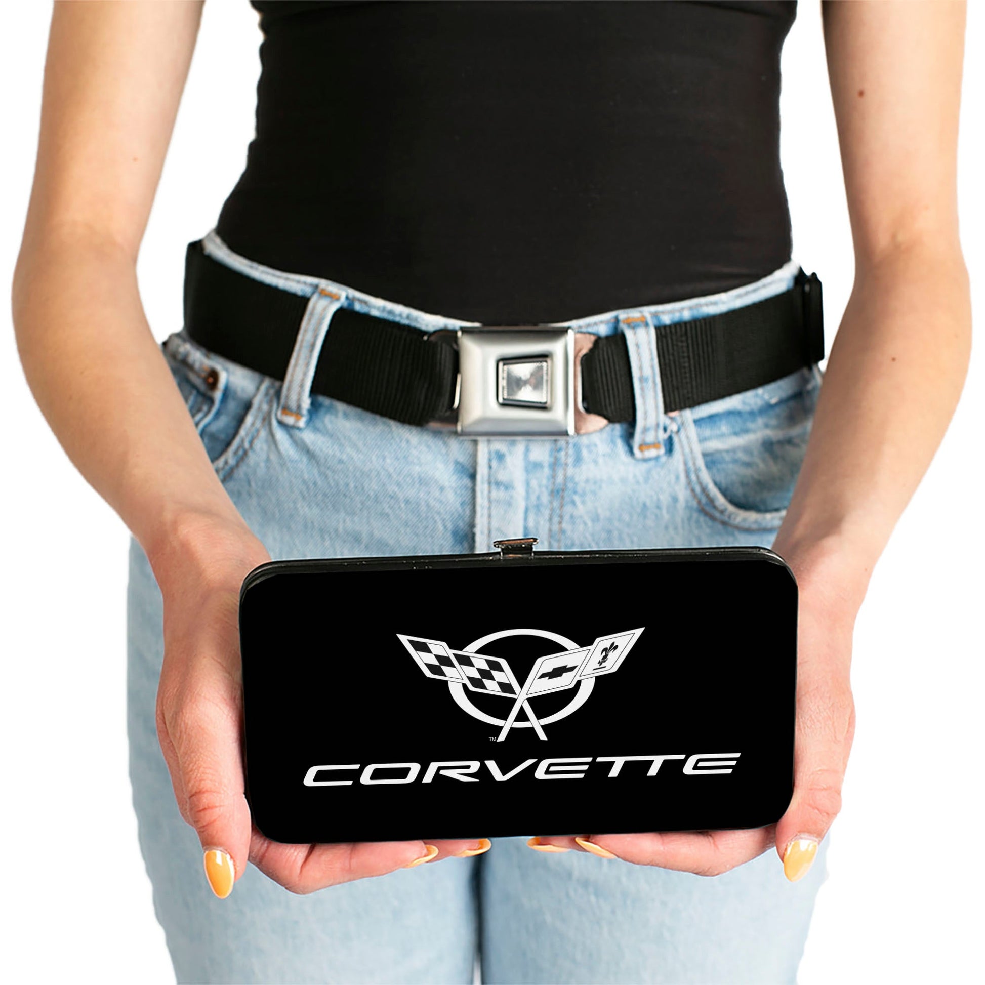 You're going to love this wallet! Stylish and sleek, this hinged wallet is made from vegan leather and stainless steel. It measures 7.0x4.0x0.75 Inches, with 2 billfolds, 4 card slots, and a windowed ID holder. The gorgeous artwork is applied using the latest printing technology, so it will hold up well over time. This product is Made in USA by Buckle-Down, Inc. and Officially Licensed by GM General Motors.