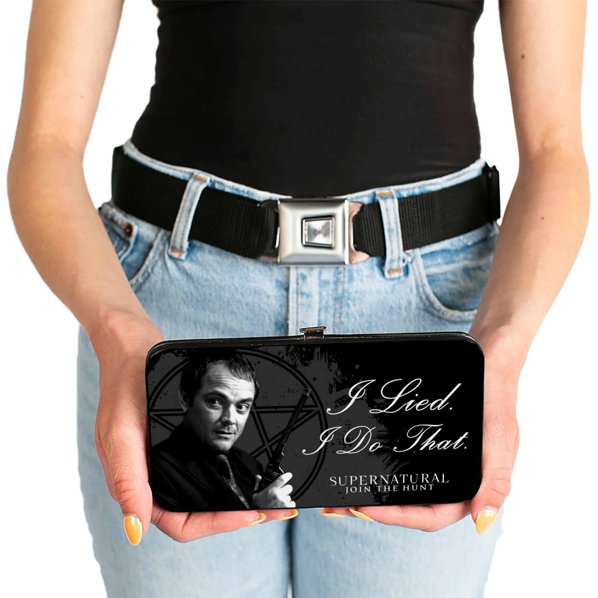You're going to love this wallet! Stylish and sleek, this hinged wallet is made from vegan leather and stainless steel. It measures 7.0x4.0x0.75 Inches, with 2 billfolds, 4 card slots, and a windowed ID holder. The gorgeous artwork is applied using the latest printing technology, so it will hold up well over time. This product is Made in USA by Buckle-Down, Inc. and Officially Licensed by Supernatural.