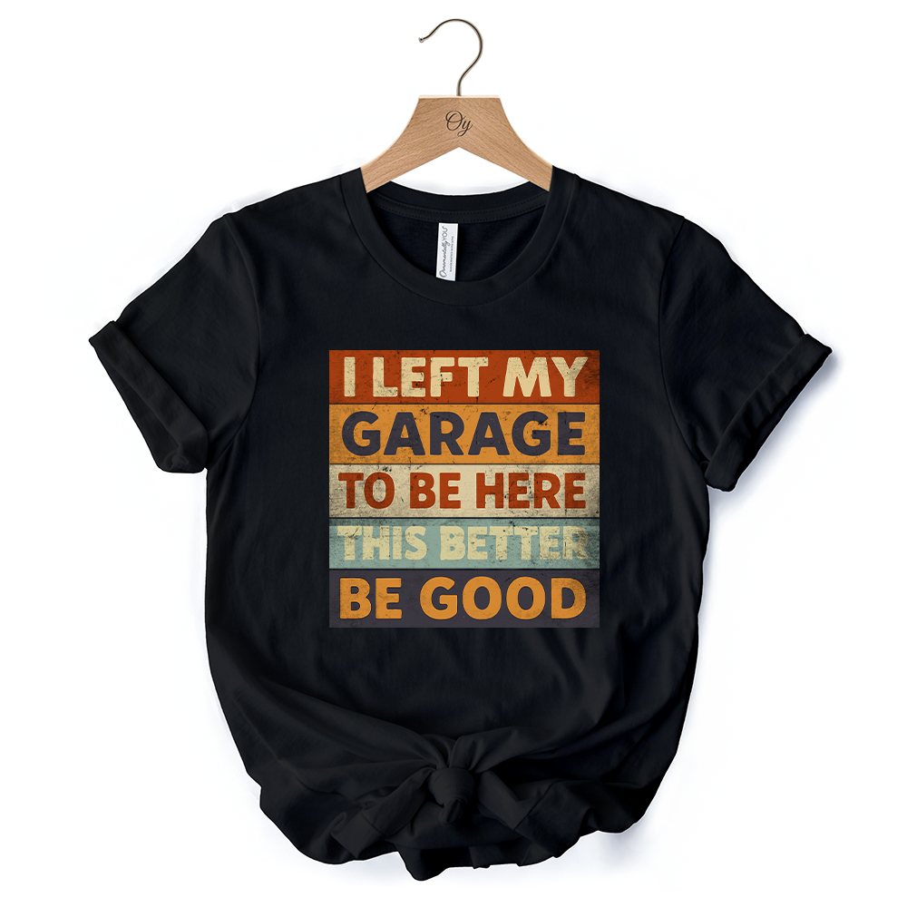 Show off your sense of humor and love for cars with this classic black tee, perfect for any car dad who knows the joy of working on vehicles—but also enjoys a good laugh! Made from soft, breathable cotton, this retro-inspired shirt features a bold, playful graphic that reads “I Left My Garage to Be Here,” making it an ideal conversation starter at car shows, weekend hangouts, or casual outings. Whether you're working on your next project or just kicking back, this funny and stylish shirt will keep you comfortable and laughing. With a vintage design that’s as timeless as a classic car, it’s a must-have for any dad who loves their ride 🚗🔧😂.
