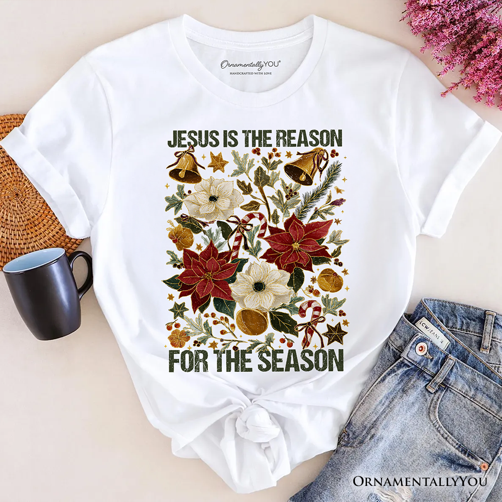 Jesus Is the Reason for the Season Floral Christmas T-Shirt, Holiday Christian Tee