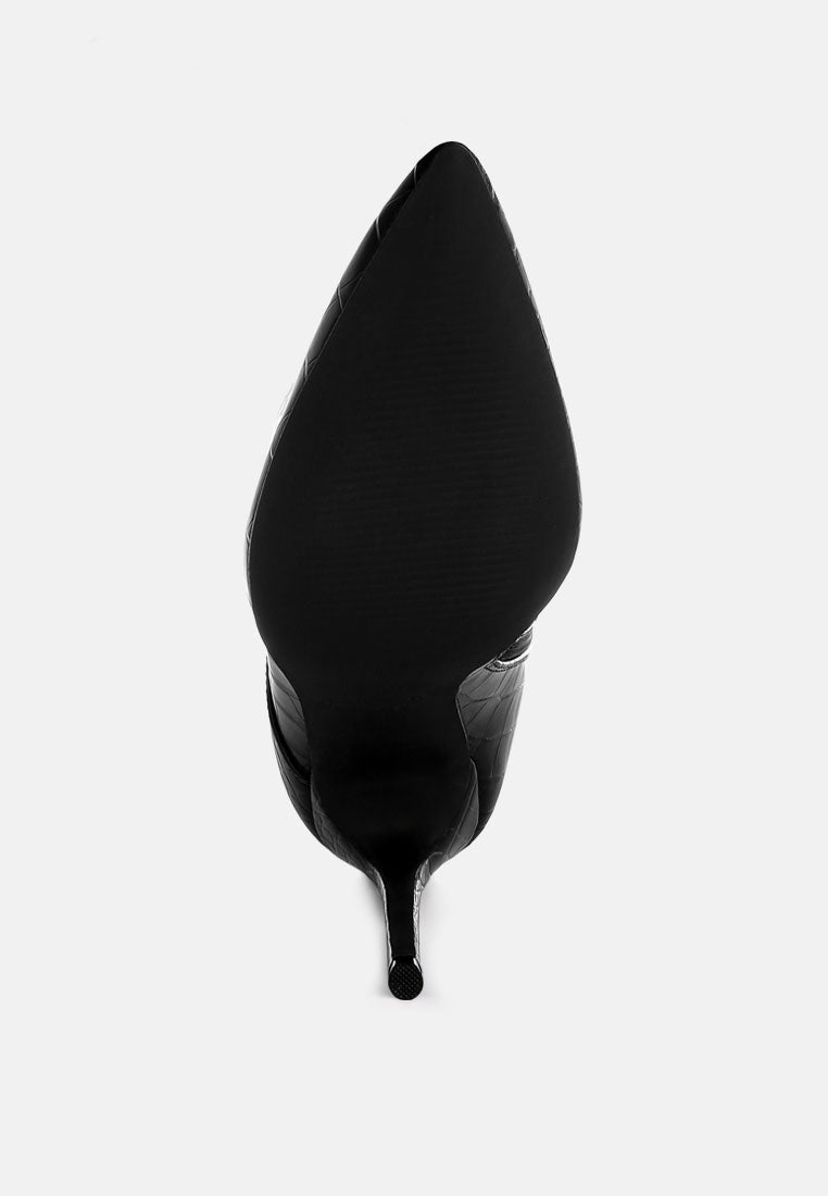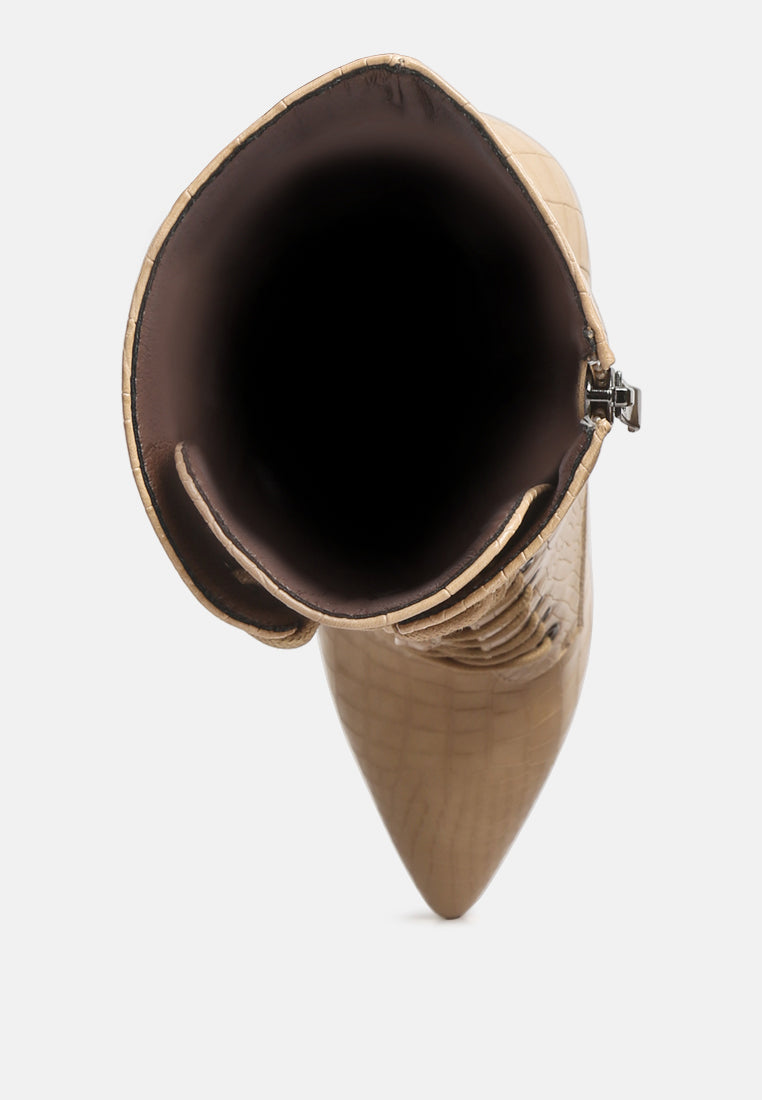 The croc textured boots are calf length and have a lace up detail which is simply stunning. Don't worry as the booties come with side zipper opening which makes it easy to wear. The high heel gives them an edgy look which is stylish and sexy.