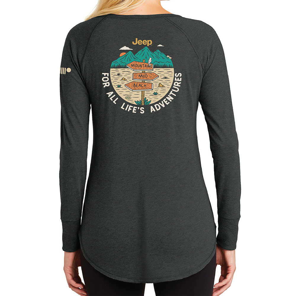 Ladies Jeep® For All Life's Adventures Long Sleeve Tunic T-shirt - Heather Black