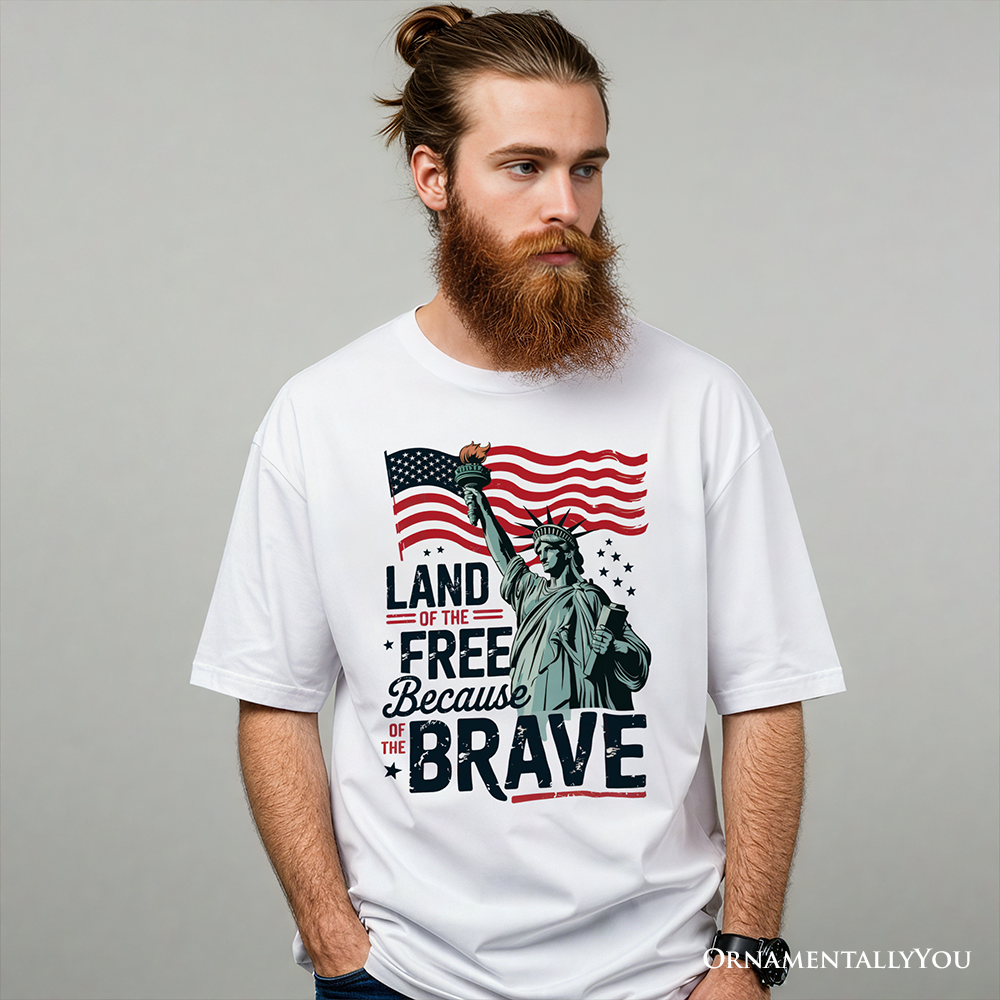 Land of the Free Because of the Brave T-Shirt, 4th of July Statue of Liberty Tee