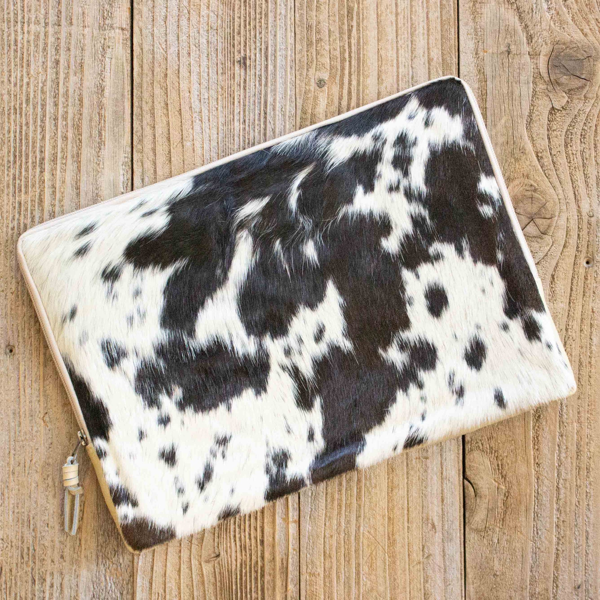 Upgrade your laptop game with the ultimate blend of style and protection. Our Limited Edition Hair-On Cowhide Laptop Sleeve is a one-of-a-kind piece, handcrafted with a luxurious cowhide front and sleek leather back. Each sleeve is unique—no two are alike—and individually photographed, so you know exactly which design is yours.