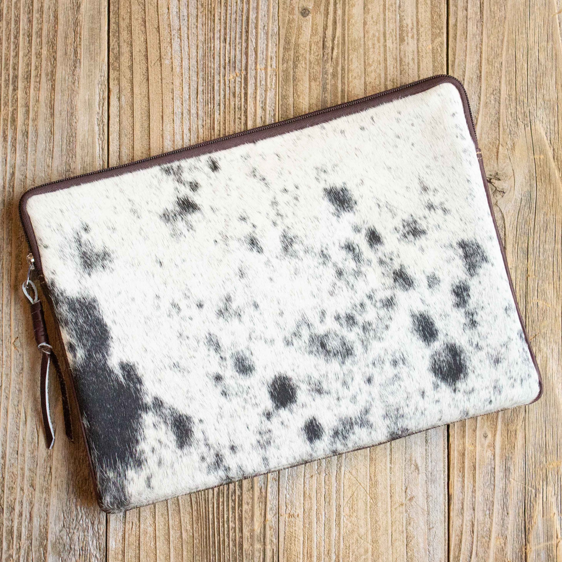 Upgrade your laptop game with the ultimate blend of style and protection. Our Limited Edition Hair-On Cowhide Laptop Sleeve is a one-of-a-kind piece, handcrafted with a luxurious cowhide front and sleek leather back. Each sleeve is unique—no two are alike—and individually photographed, so you know exactly which design is yours.