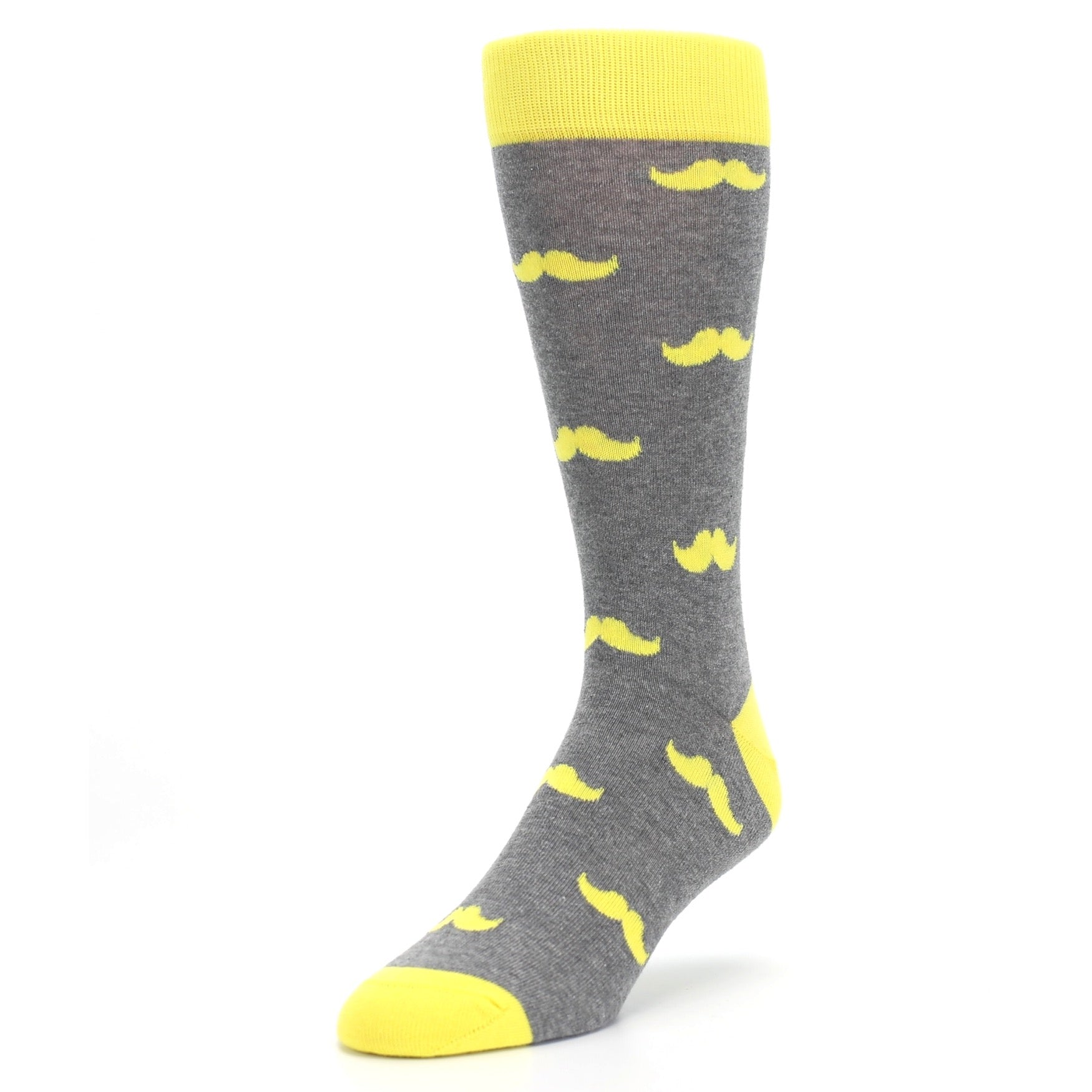 Lemon Yellow Gray Mustache Groomsmen Wedding Men’s Dress Socks