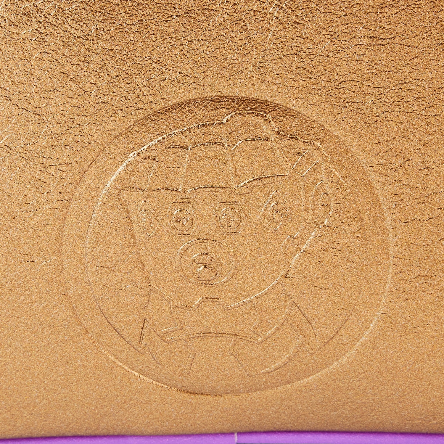 The Loungefly Marvel Metallic Thanos Gauntlet Mini Backpack is made of vegan leather (polyurethane). Bag has adjustable shoulder straps and shiny gold hardware. Additional features include applique, debossed, embossed, glitter, metallic, and printed details. Take note of the coordinating inside lining.