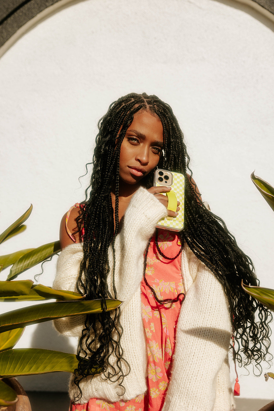 Case Design: White and lime green checkered pattern