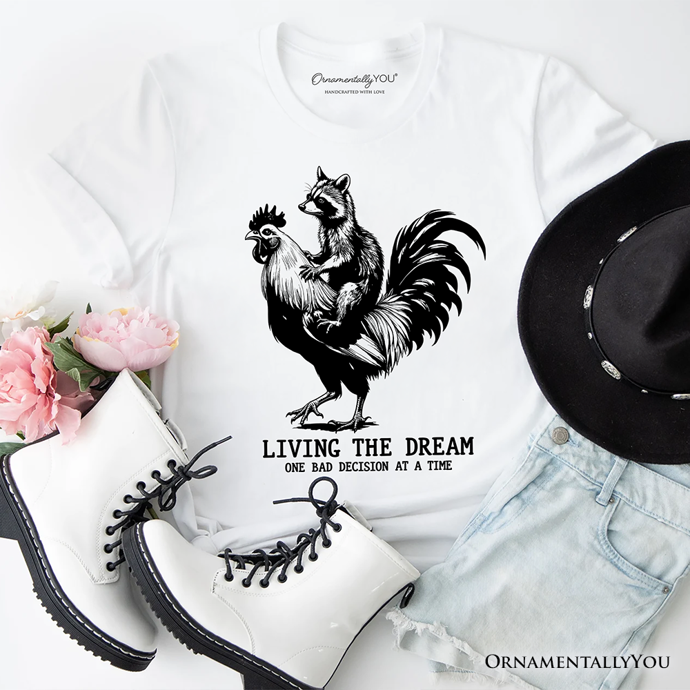 Living the Dream Funny Rooster and Raccoon T-Shirt, Sarcastic Quote Tee